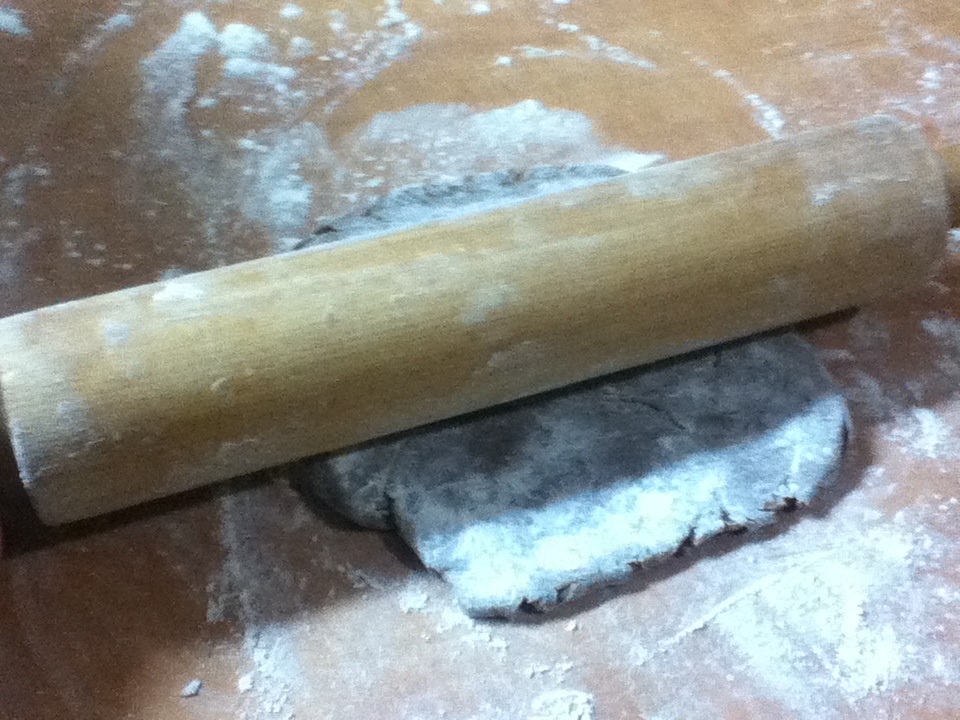 III. Dust your counter top, rolling pin and a small lump of the dough with flour. This will prevent the dough from sticking to the counter.