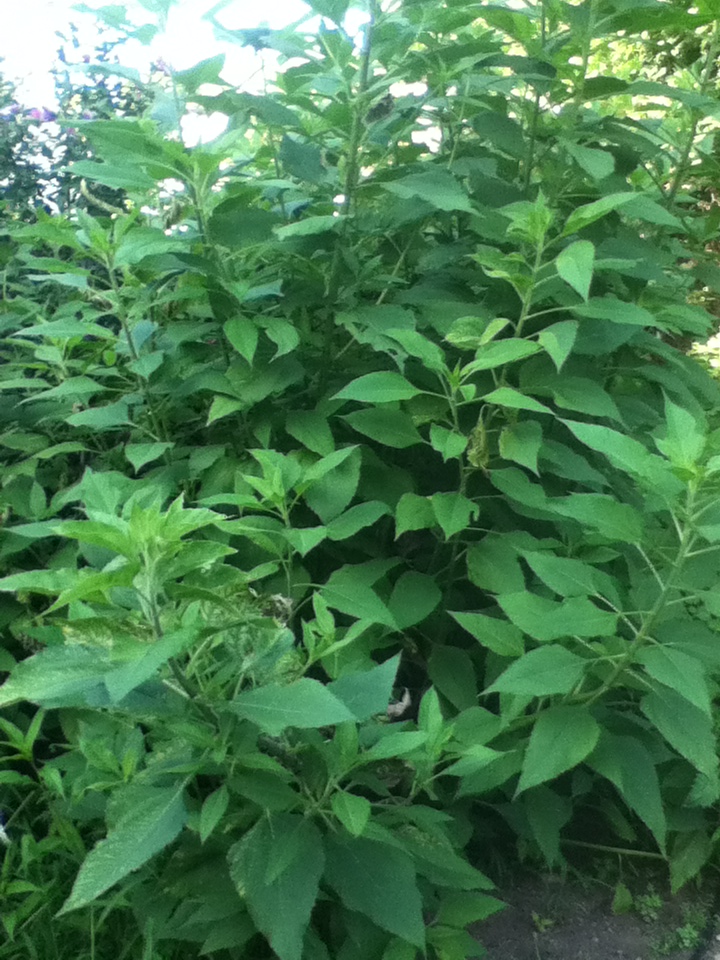 Then I remembered that I have a spearmint plant, also. How did I forget the spearmint? It is behind this massive wall of sun chokes.