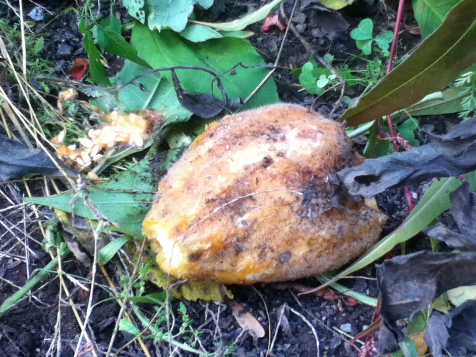 So, evidently we got exactly one cantaloupe. It was growing in the tall grass next to the garden. I found it in a state of partial decay.