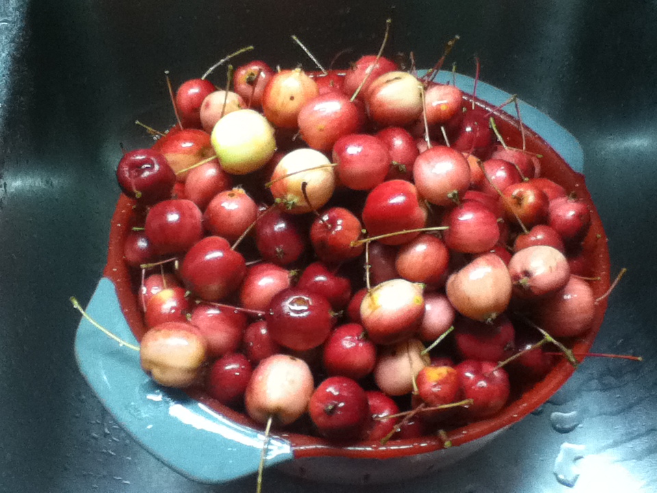 I decided to try making crabapple butter. I’ve been pondering the possibility of making my own apple butter for a while, but the initial input of apples is fairly high- 6-8 pounds depending on the recipe- and money is tight in our house. Yes, apples are all of 99¢ per pound this time of year, cheaper if you know where to shop. I’m a cheapskate, though. Crabapples only cost me my time. It was an easy decision. Here is the recipe I used. http://www.simplycanning.com/canning-apple-butter.html And here is what happened: