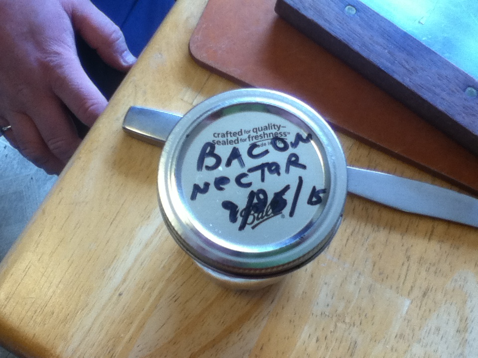 Instead of butter. Mom and Dad offered this to saute the onion and short grain rice- unfiltered bacon drippings from a previous meal of BLT sandwiches. Waste not want not, our grandmothers used to say.