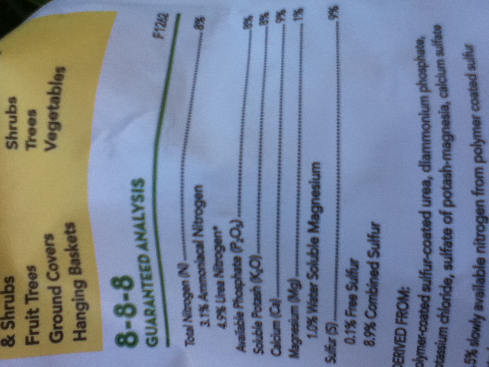 Here is the balanced fertilizer I bought. It is hard to see in the picture, but it has calcium, which our soil needs. That’s why it’s important to read the labels on your fertilizers. There can be extra stuff in there that the NPK number doesn’t reveal.