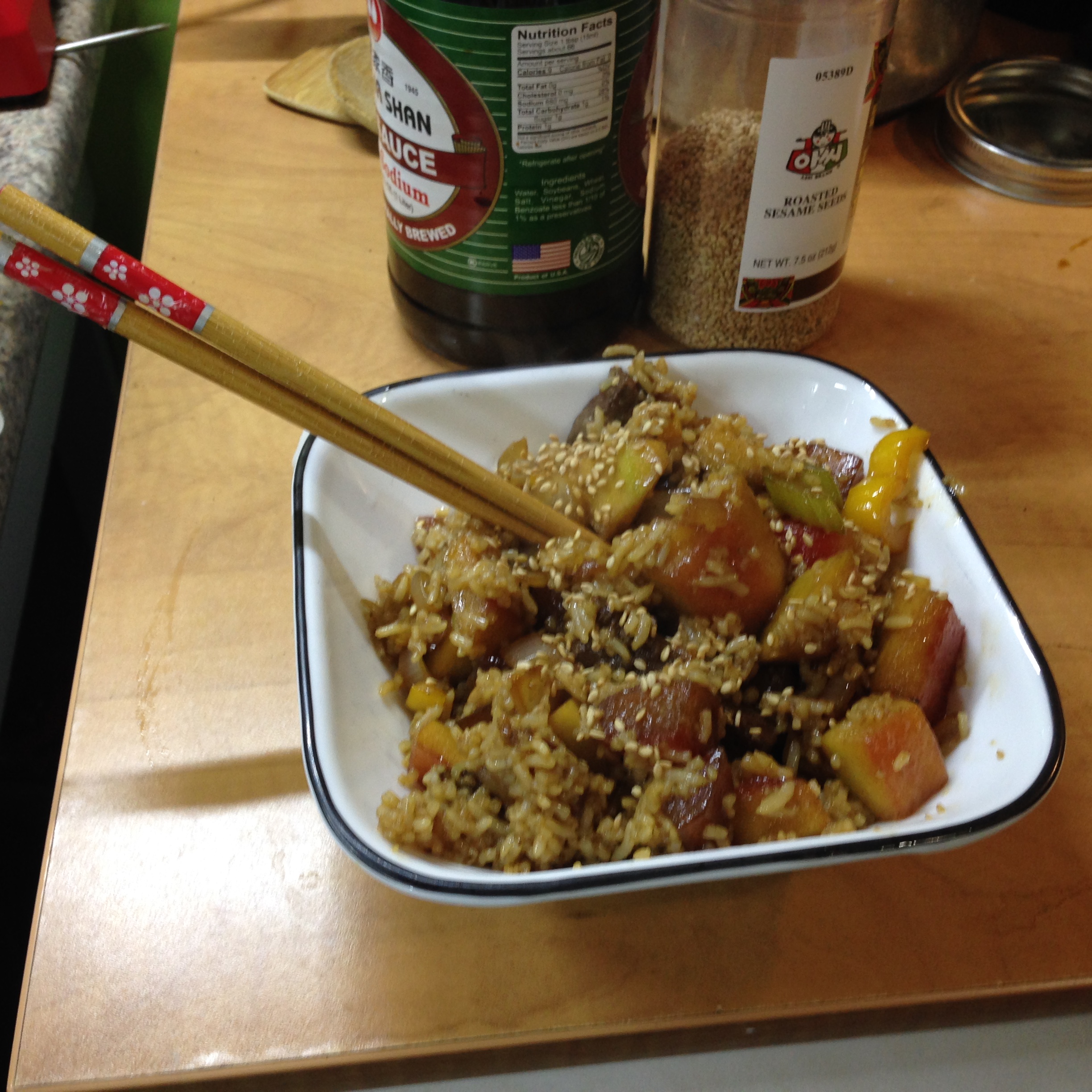 What I learned from these and other parts of the interweb is that watermelon rind is similar to zucchini in that it has a mild flavor and can be seasoned however you like. After gaining cooperation from Mr. Food It Yourself (he is a self-taught wok star), I embarked on a culinary adventure: watermelon rind fried rice.