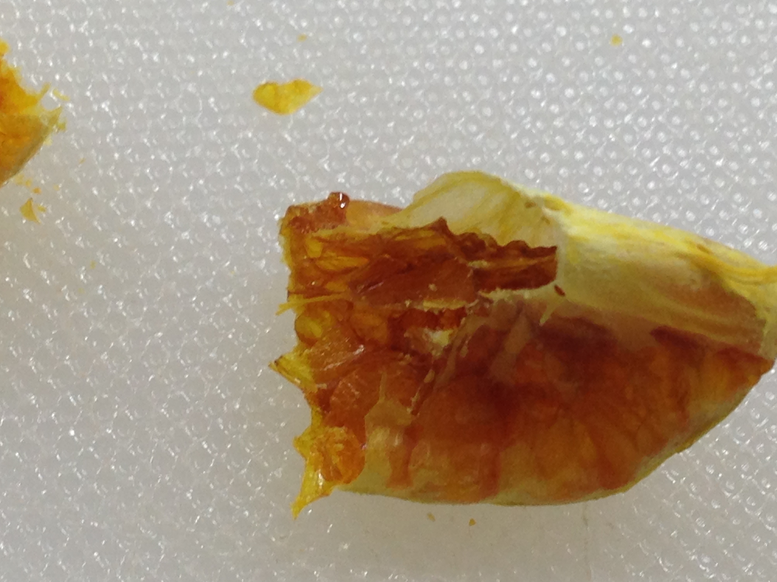 Here is a close-up shot of the inside of one section. I know the volume of a fresh fruit is mostly water. I did not realize how hollow the dry sections would be.