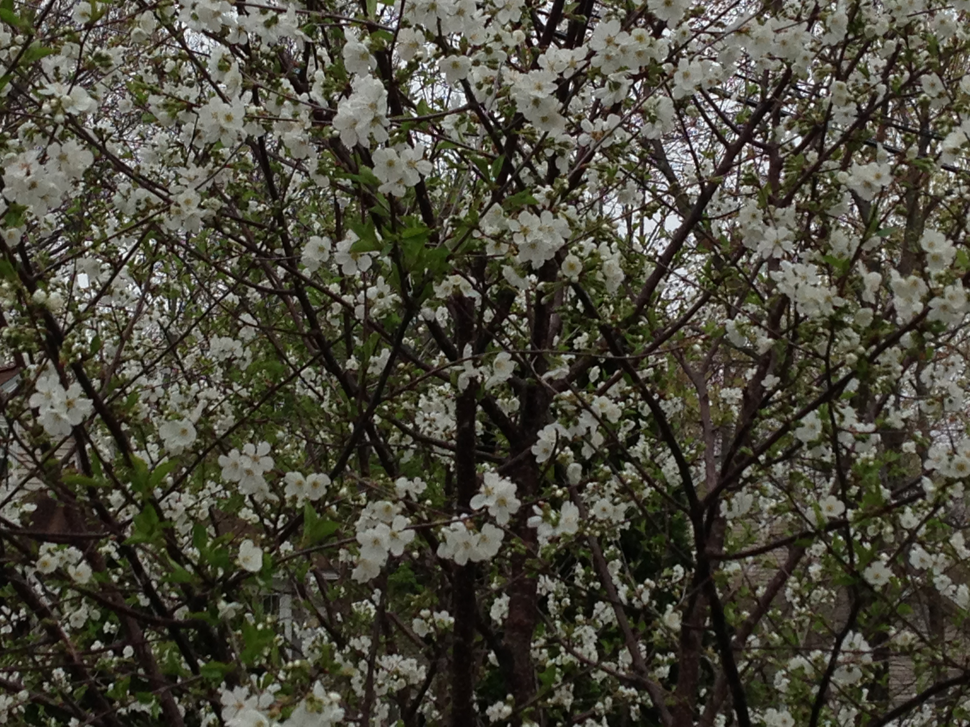 I harvested just over two pounds of rhubarb, some of which has already become barbecue sauce. The cherry trees are blooming magnificently, but with the rain I am not sure how many flowers will be pollinated.
