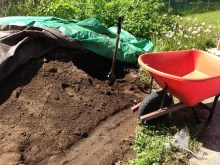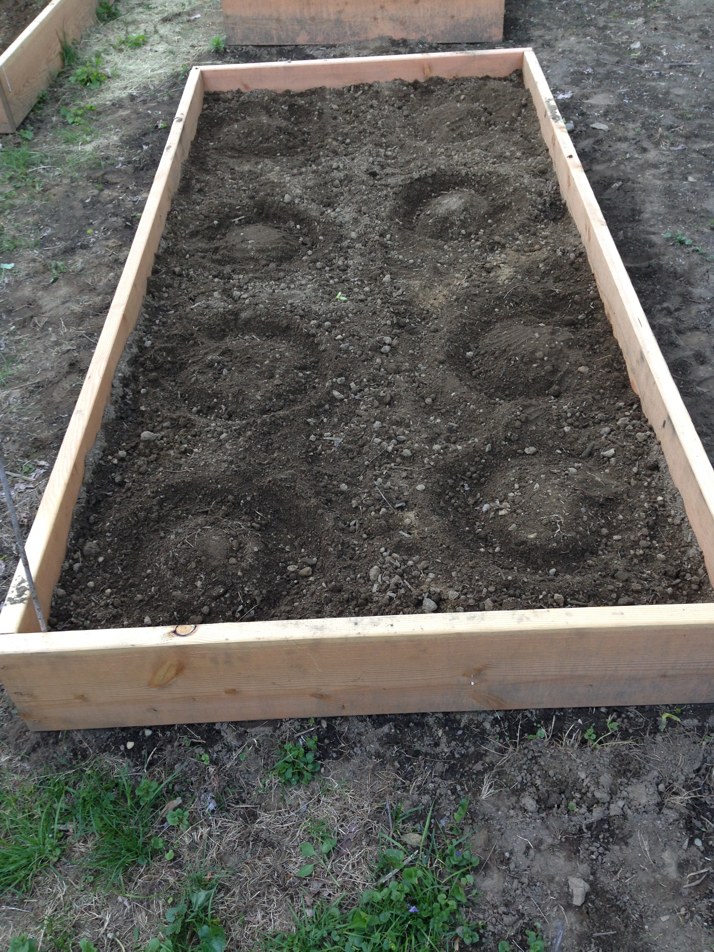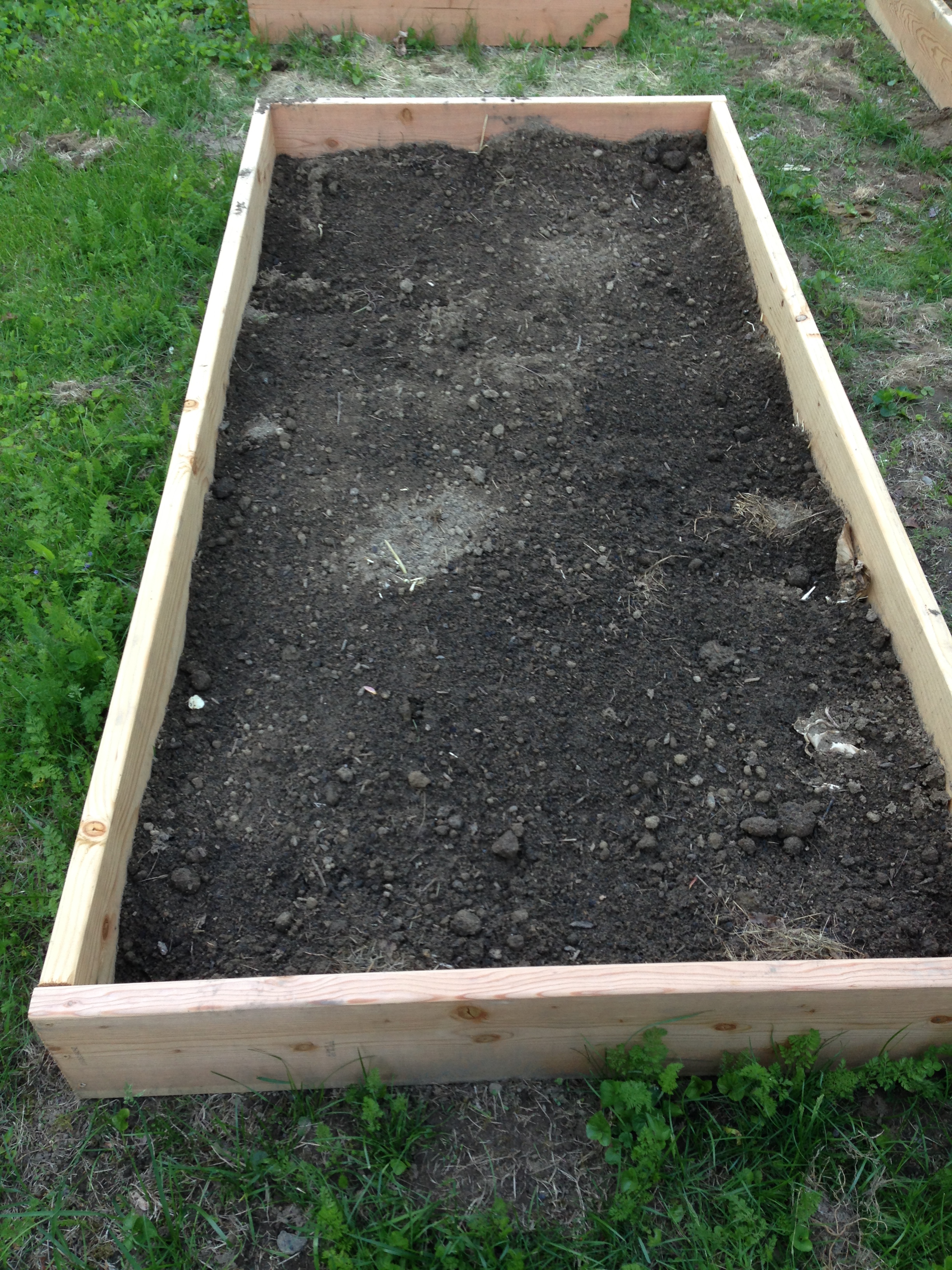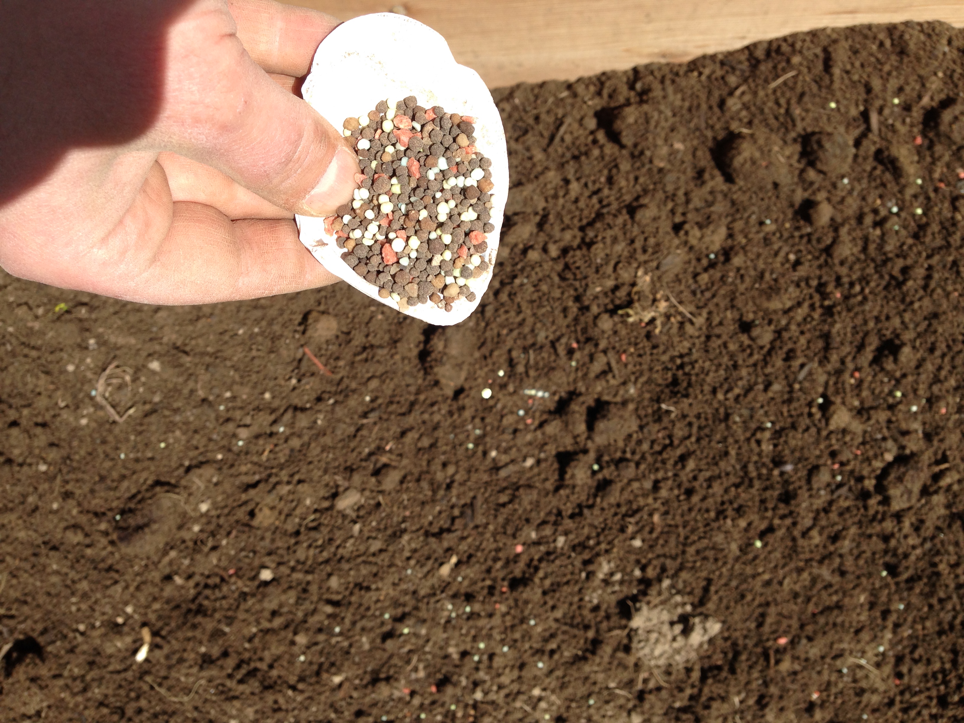 Step one was building and filling some raised beds. We found a local place that could deliver a 50/50 mix of loam and compost. A few weeks later when the rain stopped I was able to fill the beds. I raked in a little balanced fertilizer as I layered in the soil. I could not find my fertilizer scoop so I used a quahog shell. Because I’m a yankee and that’s how we roll.