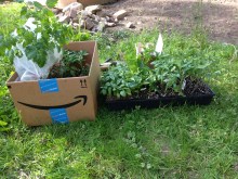 I got a few sprouts from my early-planted greens, tomatoes, and peppers. Maybe-there are some things sprouting in the area but they are still too small to identify. To be safe, I raided my local garden center for a few six-packs. Also, I gave my supervisor some bee balm and chives so she gave me a six-pack of tomato plants. Because we’re both gardeners and that’s how we roll.