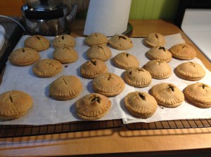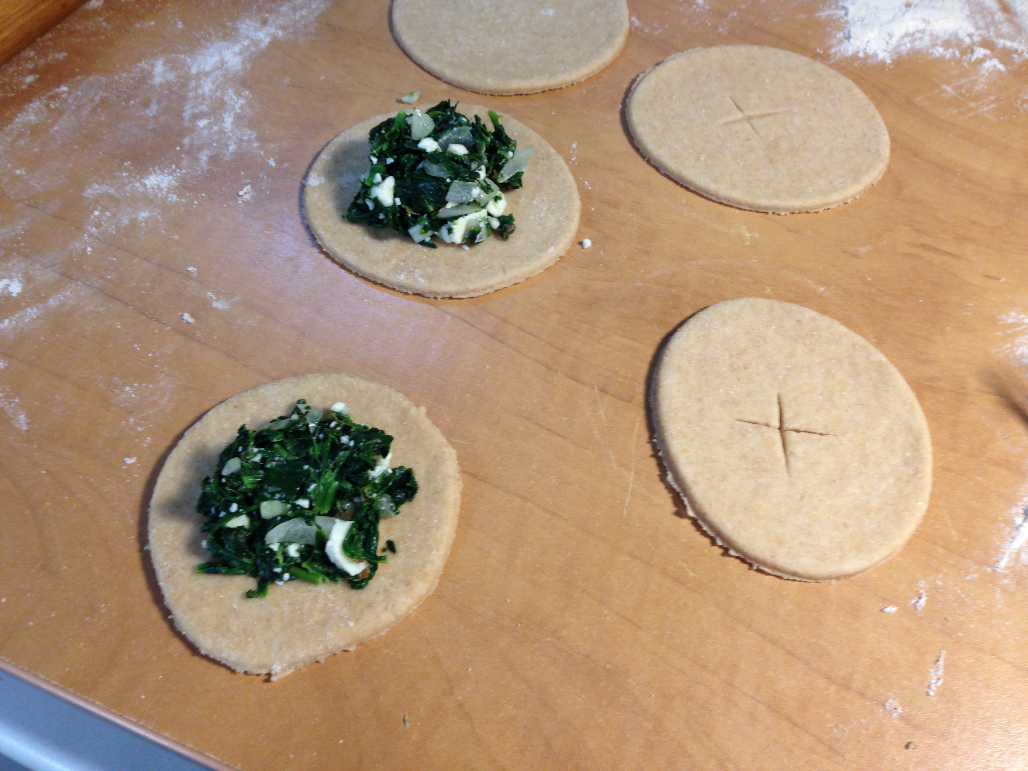 Game night was a blast! We laughed, we snacked, we played this crazy word game that involved C’Thulhu and spelling. The spinach pies complemented the other foods guests brought, and did not leave our hands greasy or fall apart onto the game pieces. Mission accomplished! The most common negative feed back I got about the pies was that there was too little filling for the thickness of the crust. I think using a slightly larger cutter and rolling the dough thinner might help. I guess I’ll have to make them for next game night to see if I have fixed the problem.