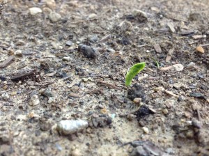 I can’t say for sure my mental powers were involved, but this little snow pea sprout appeared on Friday.