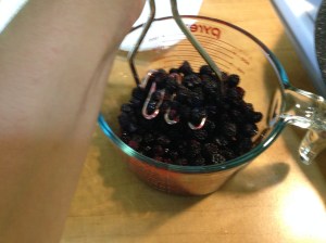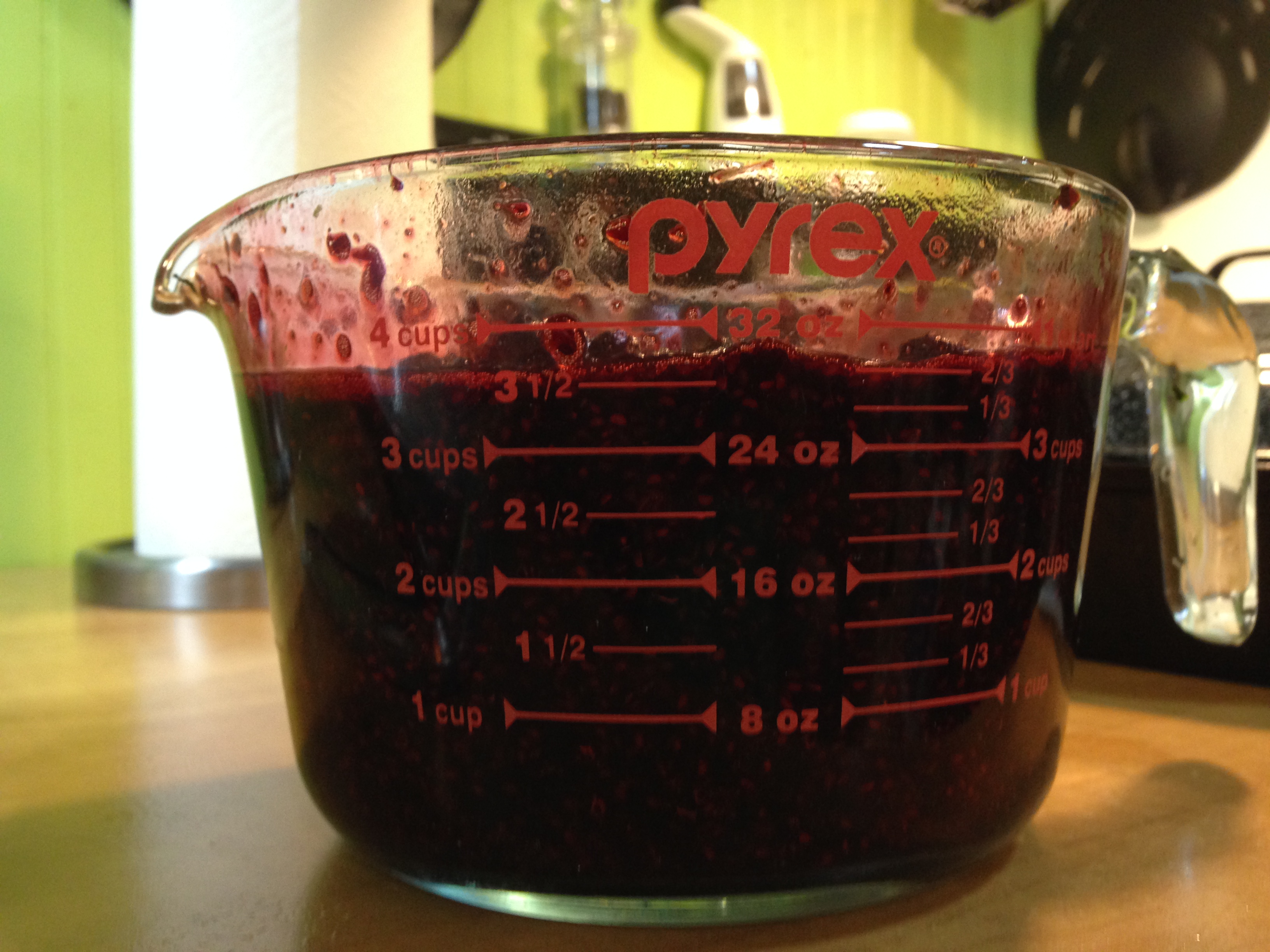 I smashed the berries in a large measuring cup. I got three and a half cups from two pounds of fruit. Since the recipe requires six and a half cups, and we never ever ever deviate from canning recipes, I put this batch in the refrigerator. I picked the rest of the fruit the next day. Finally, it was time to jam!