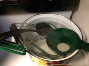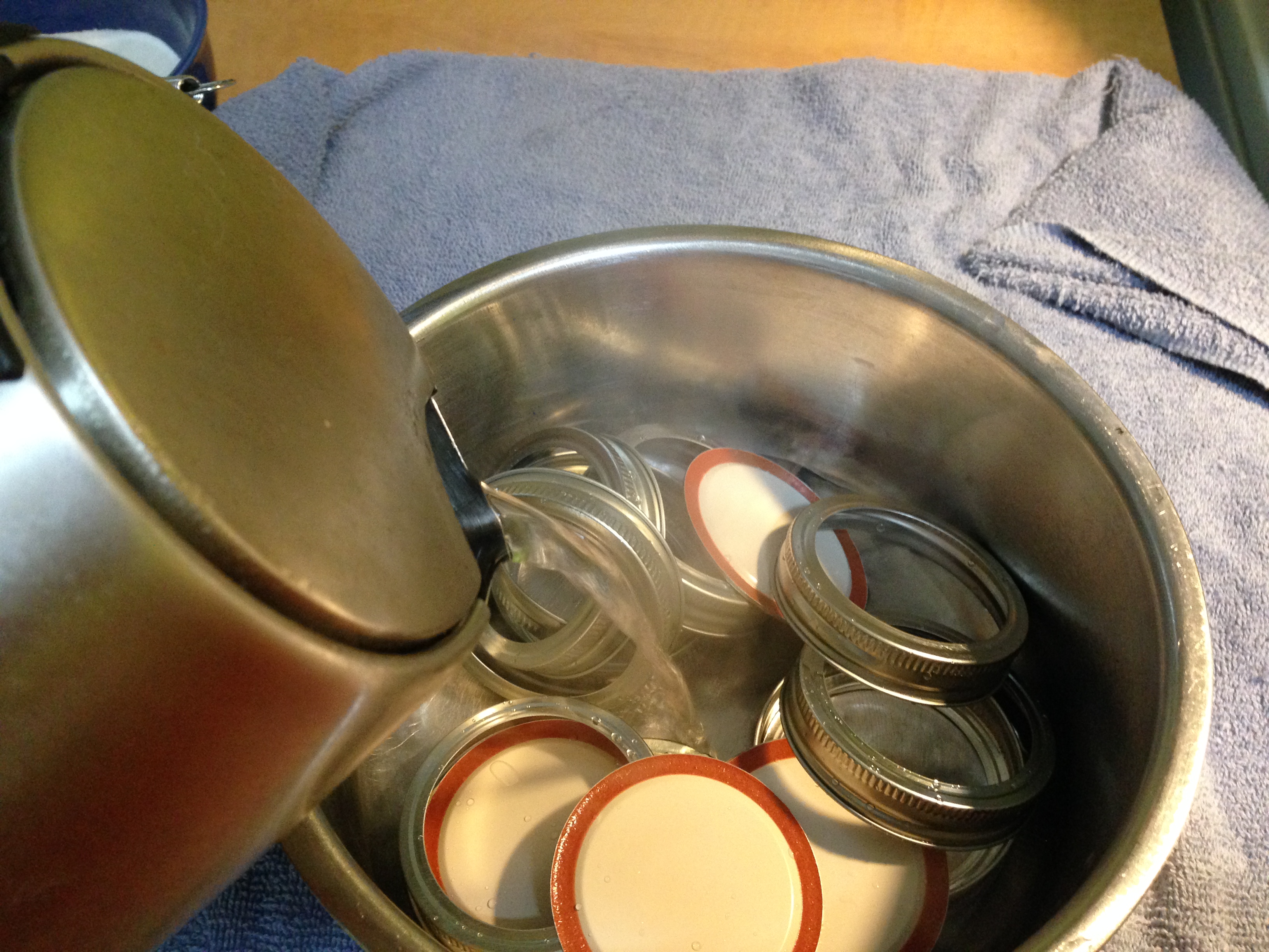 Just a reminder to long-time canners: it is no longer recommended to boil your lids. The new BPA-free seals cannot take the heat. Just cover them with hot water and let them sit until it is time to pack your jars.