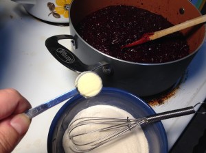 There it is! You can pull out a timer for your one minute boil, but I usually just count to 60 Mississippi. You could also count to 60 alligator. The important thing is that you keep stirring the entire time. After that minute is up kill the heat and mix in the rest of the sugar. Again, keep stirring. This time you are going to stir until all the sugar has dissolved. Fill and cap your jars, then process for 10 minutes.