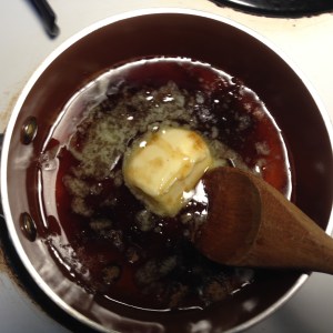 Honey, brown sugar, butter, salt and vanilla were heated ever so gently over low heat.