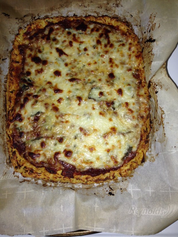 There are plenty of carbohydrate controlling ways to enjoy pizza. English muffins are just about perfectly portioned for our updated DIYet. We have found that English muffin pizzas do satisfy the pizza craving. I like having options, though. Also, I have been seeing a flood of recipes on the web using cauliflower to make things normally made from grains. You know me, I have to try the food trends! My biggest issue with the recipes I found is that many of them are posted by quack diet followers.
