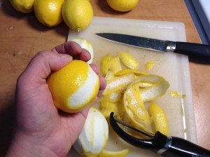 No need to shell out cash for one of those fancy citrus zesting rasp thingies. With a good peeler you can strip off the zest with little to no white pith attached, then slice the zest with a sharp knife. Enjoy that lemony scent.