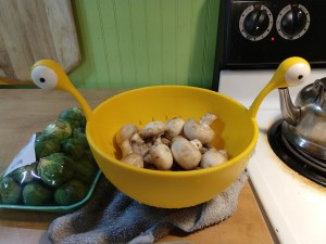 Step one- wash those mushrooms! Seriously, they are grown in manure. Wash them a lot before you proceed.