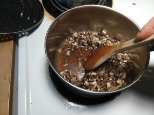 After about 15 minutes the volume of mushrooms will decrease and all the mushroomy essence will puddle in the bottom of the pan.
