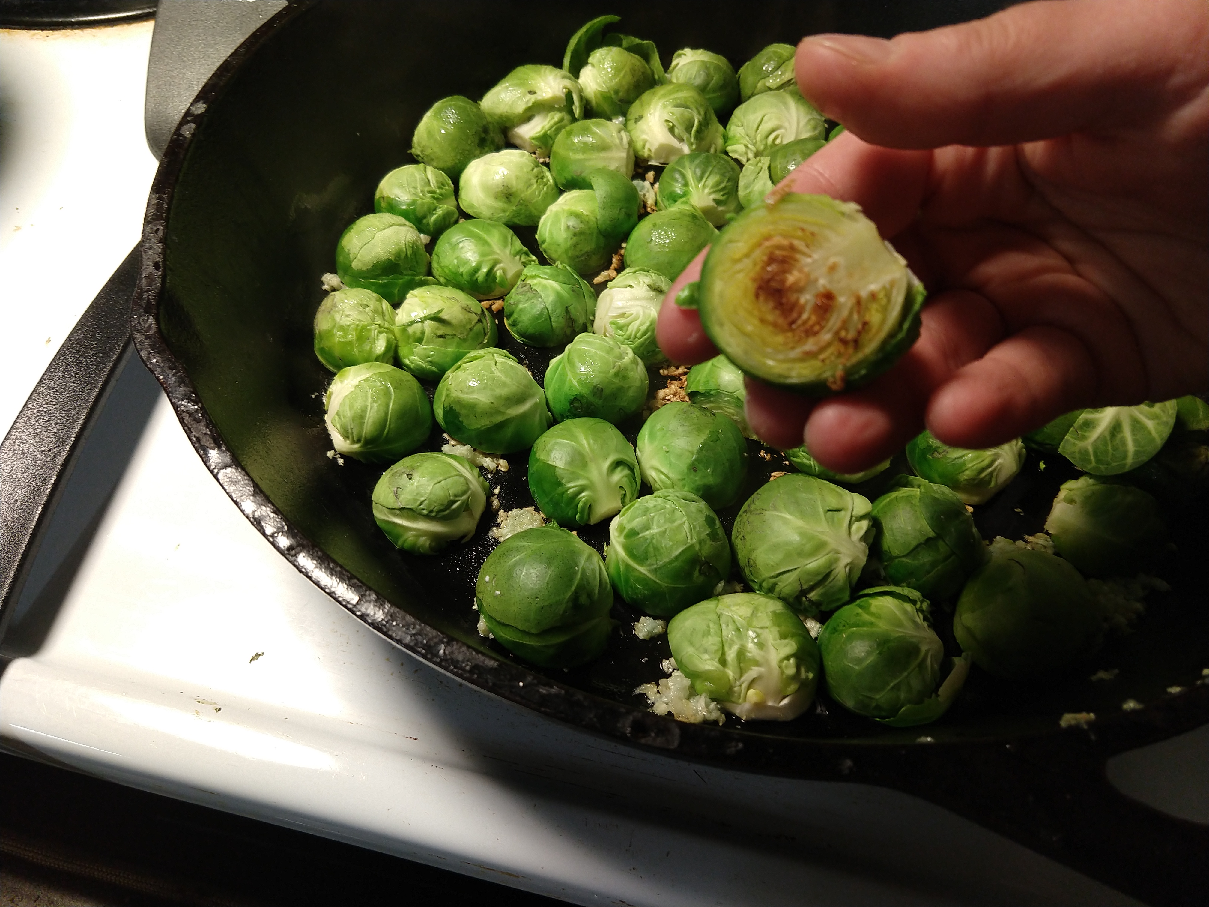 BONUS: Here is my tip for amazing Brussels sprouts. When you sauté Brussels sprouts place them into the pan with the cut side down for 15-ish minutes over medium heat. Look how pretty!
