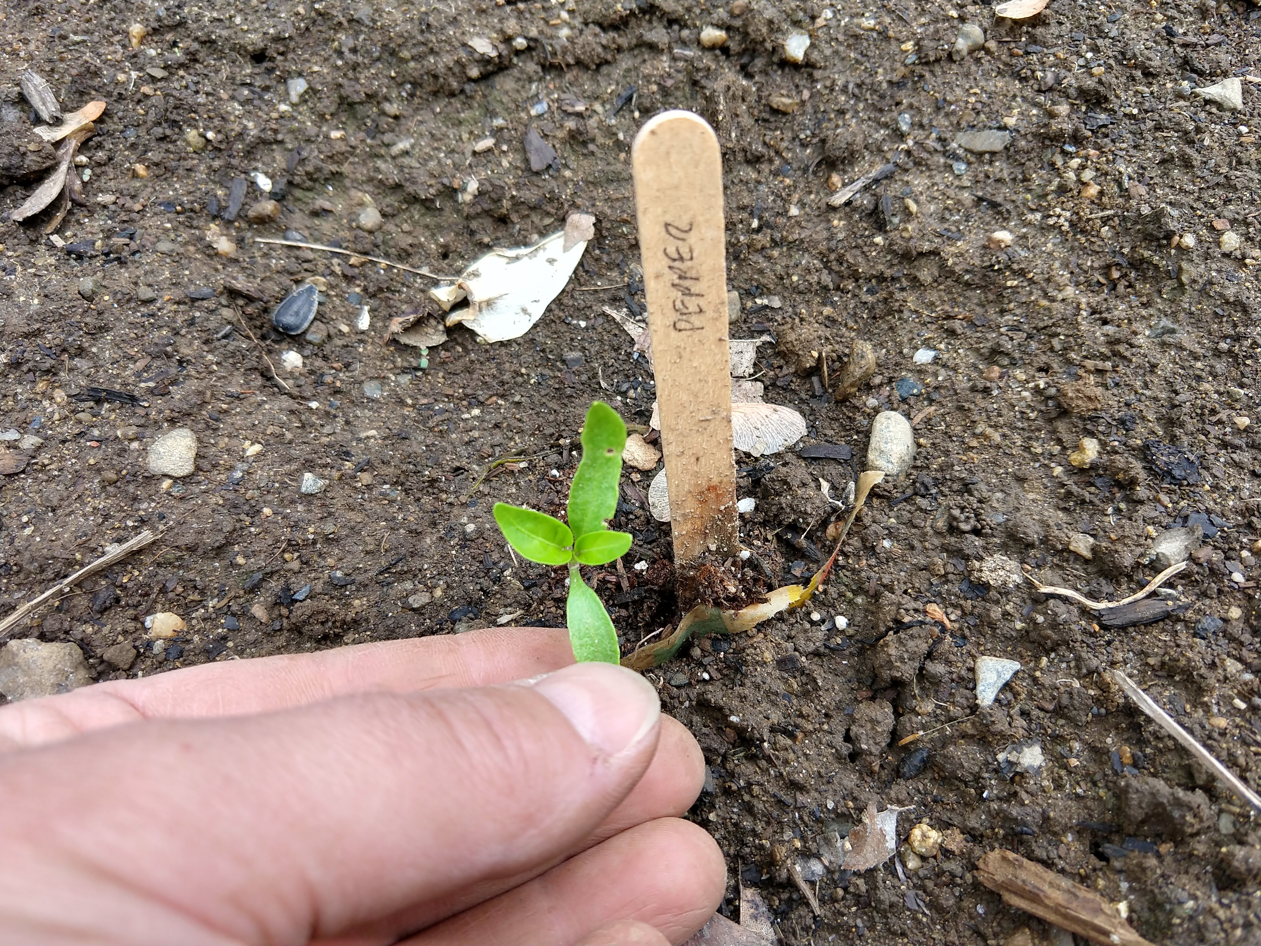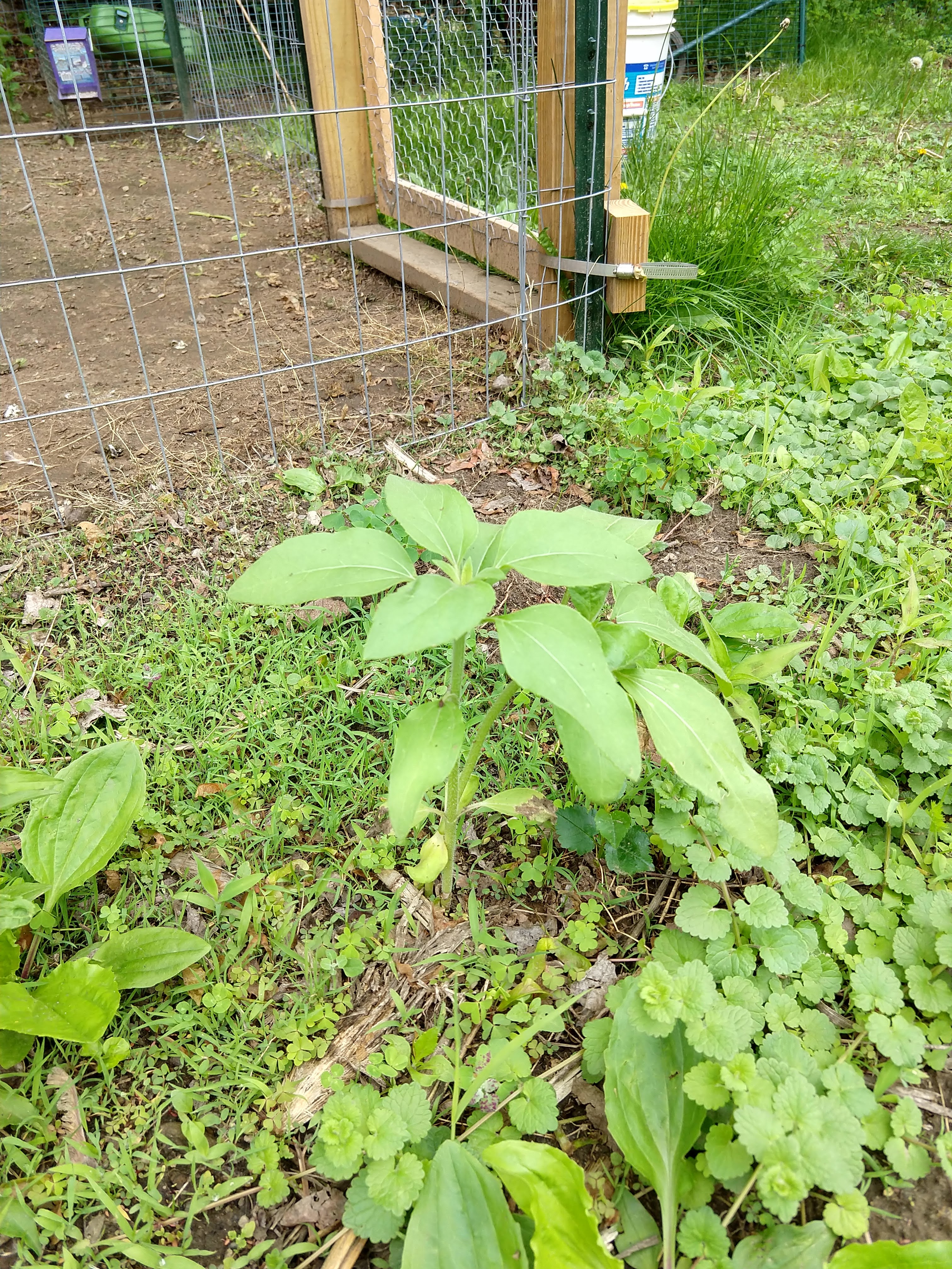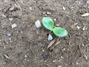 I did keep a couple of “mystery squash” sprouts. They could be pumpkins, zucchini, acorn squash, cucumbers, who knows. I had extra room in the dug-up part of my front yard, so I could not resist.