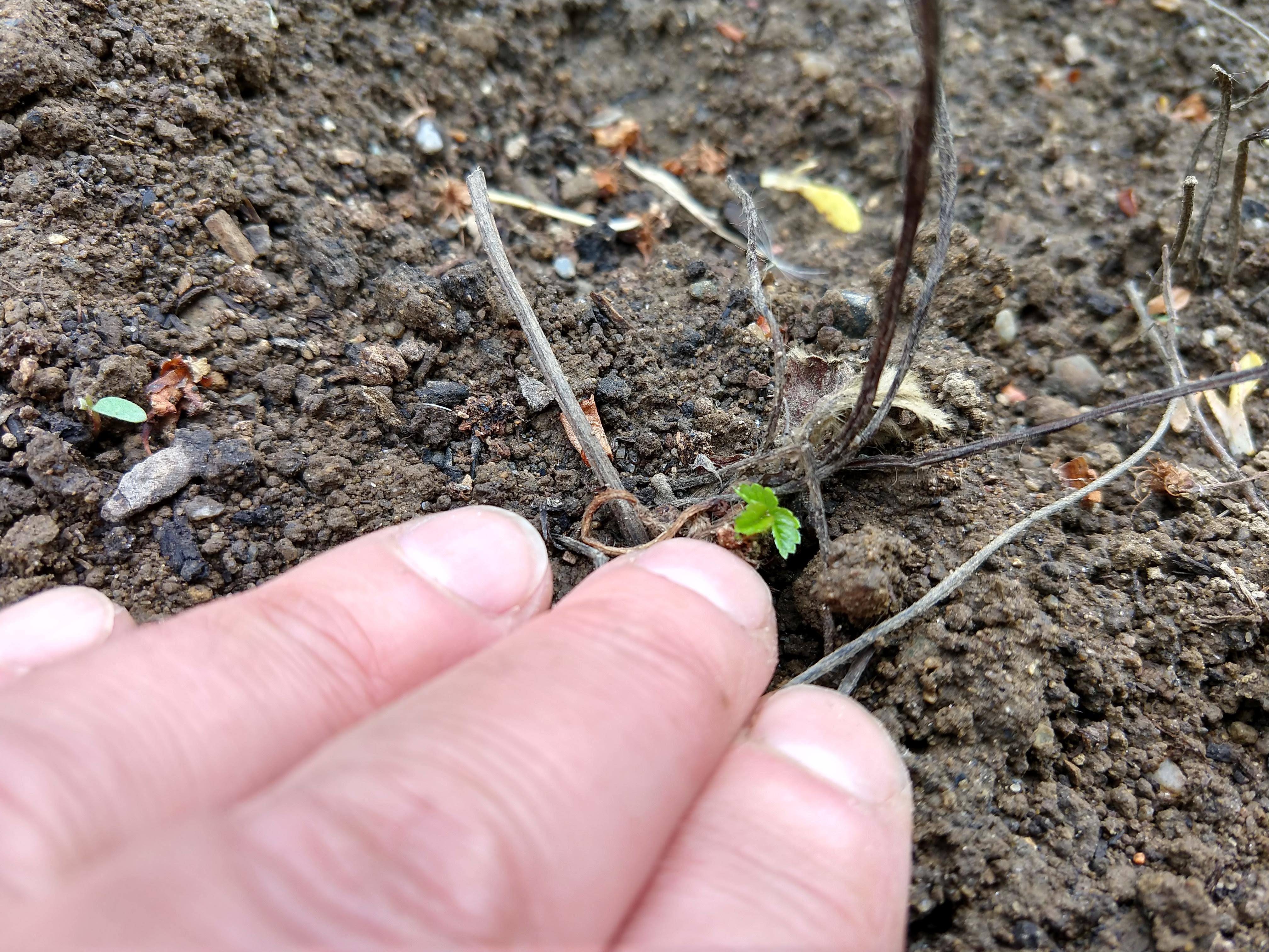 What to do with those, obviously, ultra-strong tomato plants? I struggled with that question. My instinct was to keep all of them and have an absurd number of tomato plants this year. Then I remembered that the last time I kept all the volunteer tomatoes I had issues with fungi and insects. I decided I would toss all the sprouts I plucked up today, but would consider options for growing in pots should more sprouts appear. It seemed like an adequate compromise.