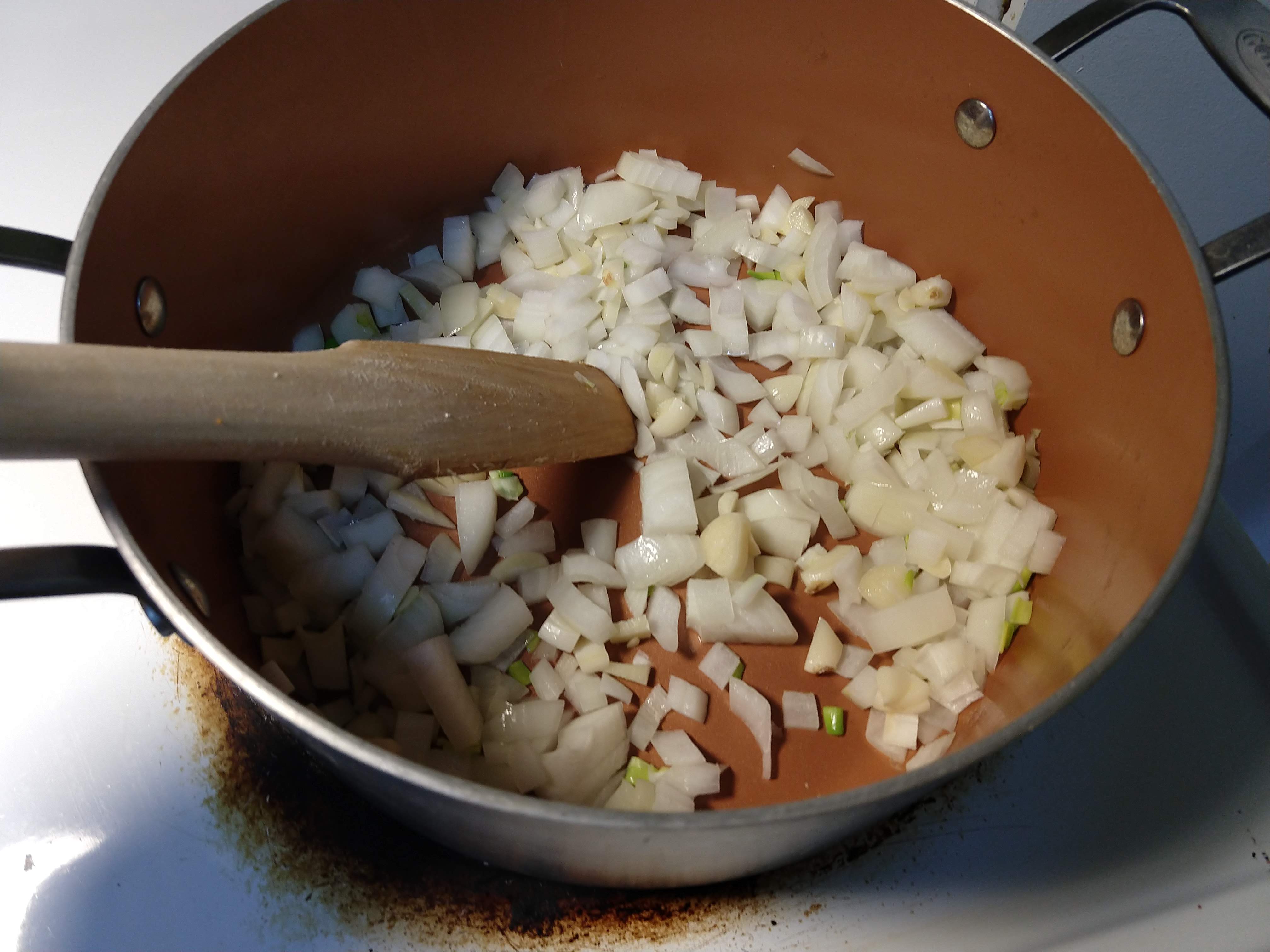 First, I chopped the onion and garlic and sautéed them lightly.
