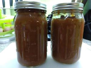 And there we have it-two quarts of home made barbecue sauce. Mr. Food It Yourself took a taste and declared it “very, very, tasty”. And he is all about the barbecue sauce.