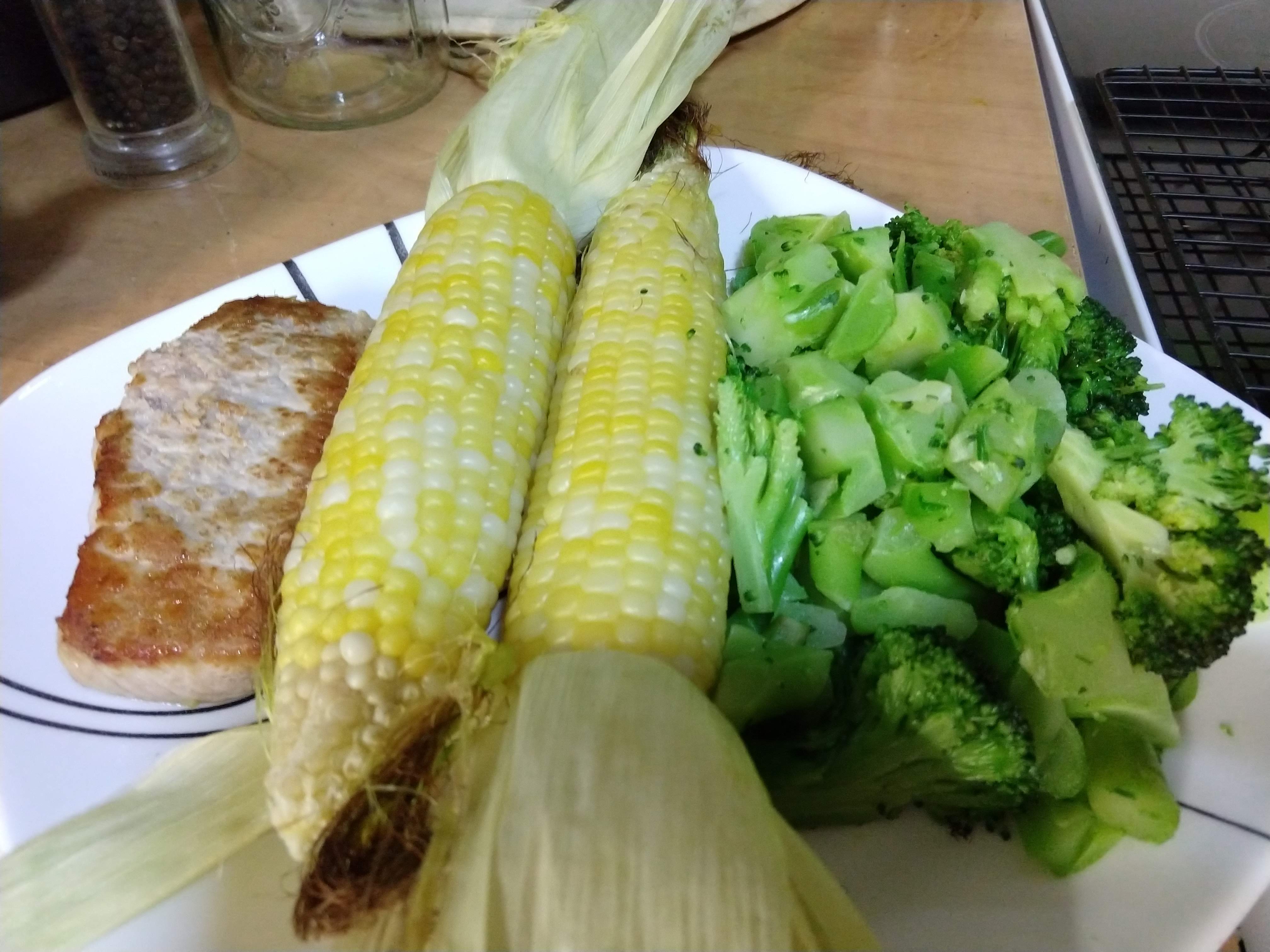 How pretty is that plate? They were not the sweetest ears of corn I ever had. I think the flavor got a little watered down in the rain. Mr. Food It Yourself agreed. On the positive side, the ears did not taste swampy and were not infested with bugs or mold. I think this is my garden win for 2018.