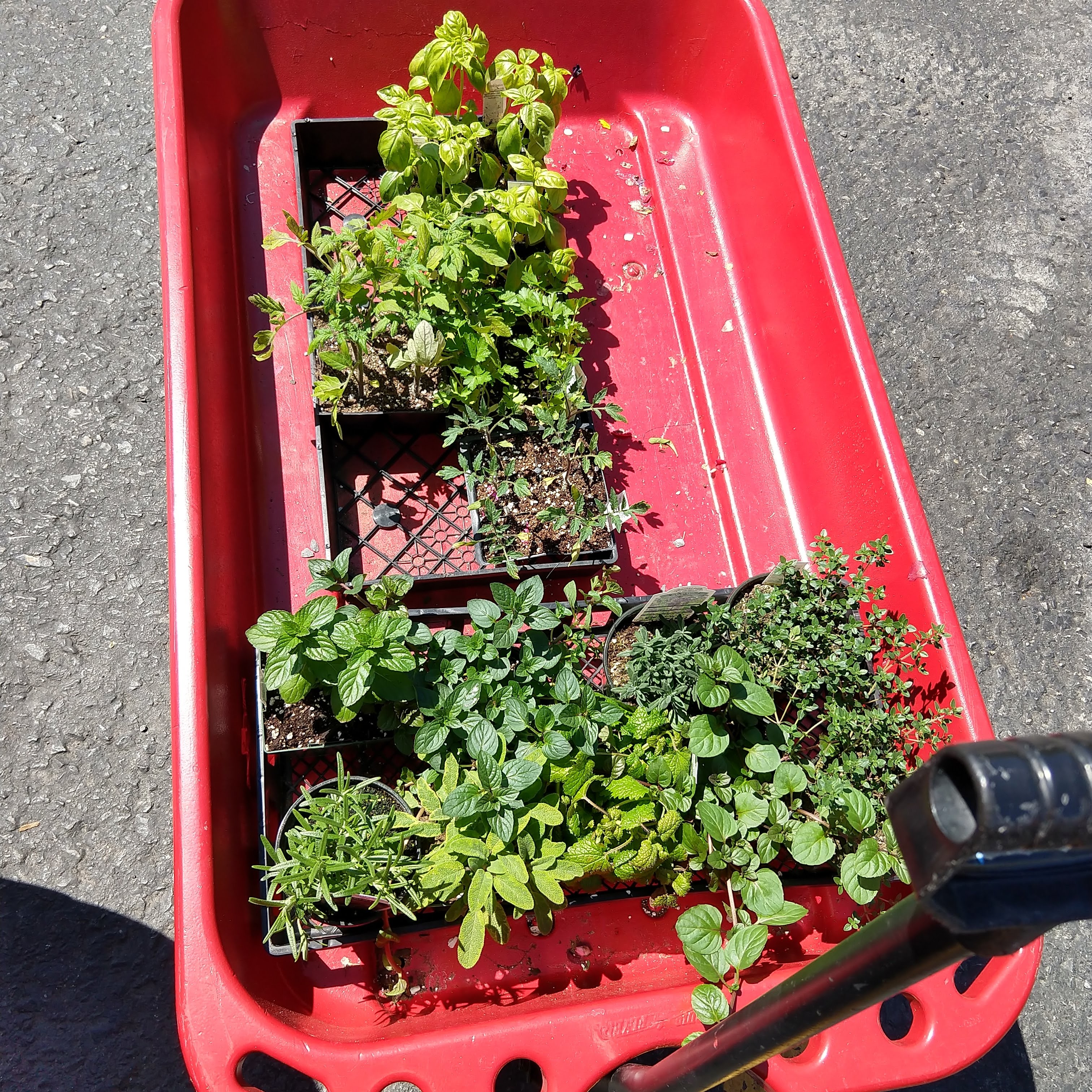 As you can see from my wagon, I also picked up some herb plants. My thyme did not winter over nicely, so I bought two more. My sage didn’t survive at all, so I found a lovely variegated replacement. I divided my lavender and I think I killed it, so I picked up a replacement. I also bought a rosemary, since that just does not winter over this far north.