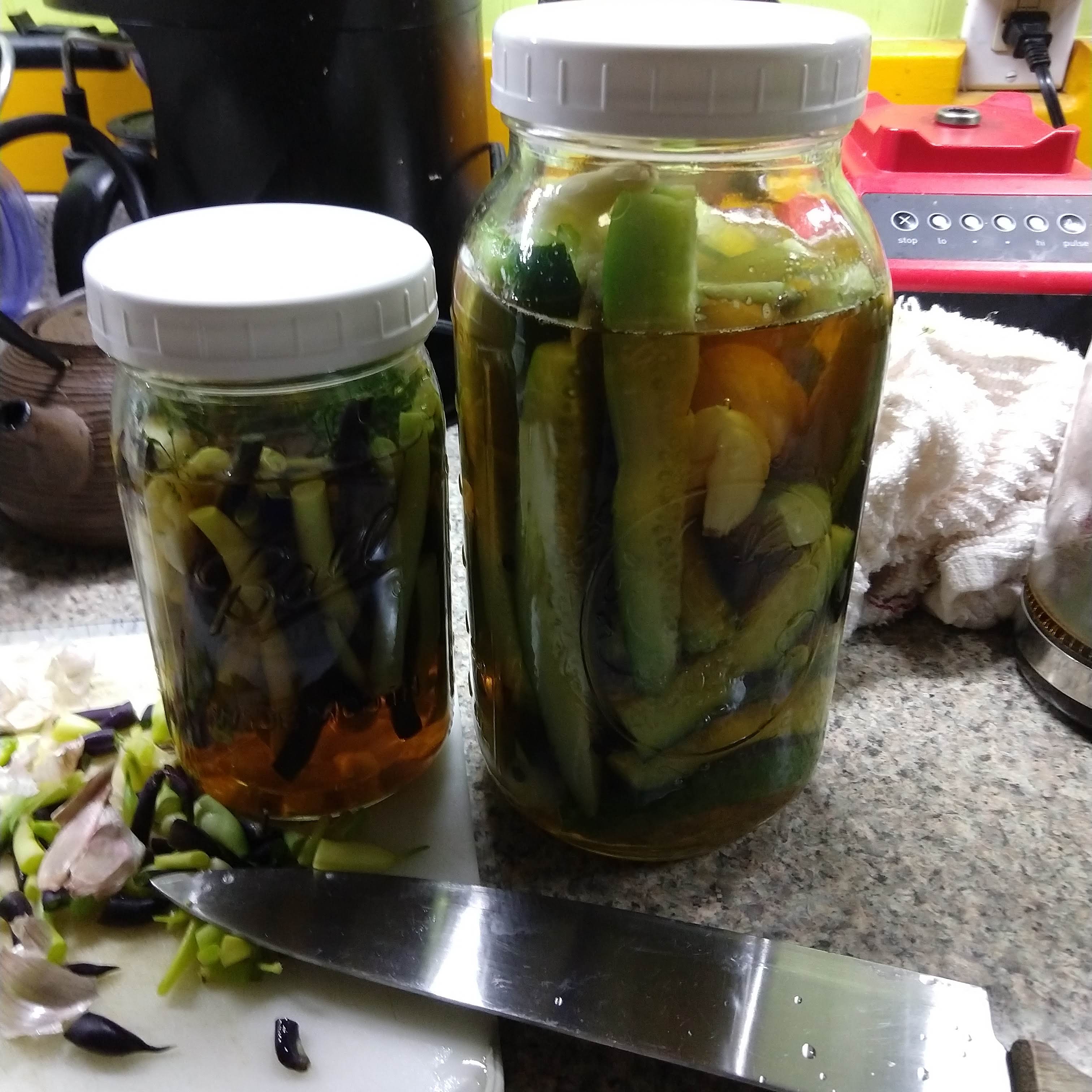 With my first cucumber harvest of two pounds, I made a big jar of refrigerator pickles. I also had enough string beans that day to pickle. Already, that is leaps and bounds above last year’s harvest.