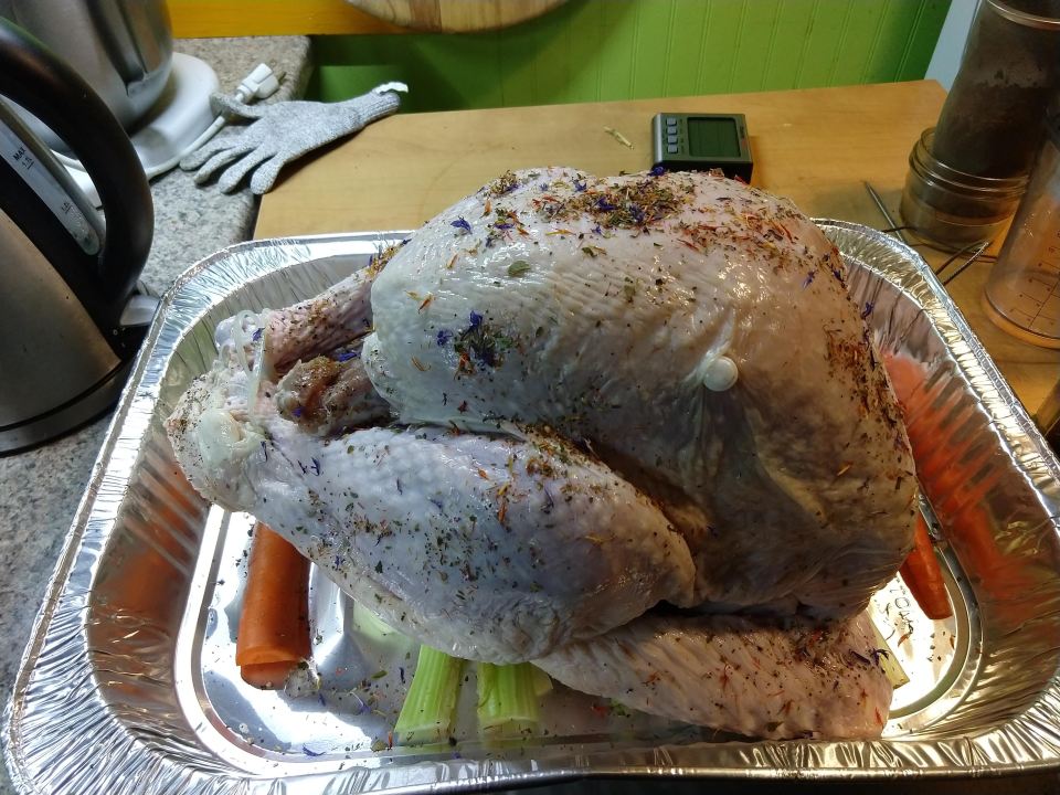 A few months ago I hit the grocery store jackpot- whole frozen turkey for $0.48/lb. Yes, you read that correctly. Forty-eight cents per pound for a frozen turkey. I picked up a 17 pounder. That is a lot of food for just Mr. Food-It-Yourself and I. We ate some the day I cooked it; some leftovers went into the fridge and some went into the freezer, covered in leftover gravy.