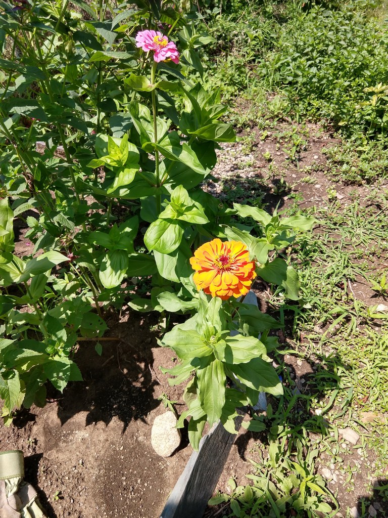As I mentioned during the planting stages of the 2019 Food It yourself garden, I bought zinnia seeds on a whim from my local dollar store. I was hoping they would round out my newly-constructed front yard bed of bee-balm. After all, the zinnias I’ve seen top out at twelve inches high, give or take. They would look good in front of the 3-4 foot tall bee balm stems. Not only did the zinnias bloom in a delightful assortment of colors, but some are now taller than the bee balm. The picture to the left is from mid July. I would have gotten a more current picture, but peak mosquito time was fast approaching, so I was itching to get inside; pun intended.