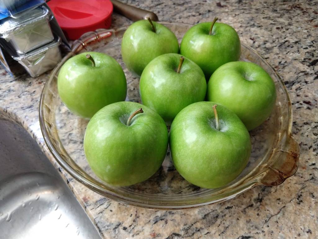 Another top tip my sister shared- to estimate the number of apples you’ll need to fill your pie pan, do a quick dry-fit with the whole apples. Seven was just the number we needed.