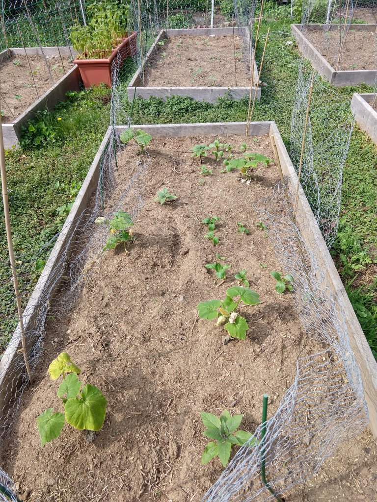 Raised beds 7&8: cucumbers and more string beans. Last year I found this great recipe for pickled bean salad. I want enough beans to make some. I also want pickles. Mr. Food it Yourself wants pickles. This will be the year of pickles! So, I planted a lot of pickling cucumbers.