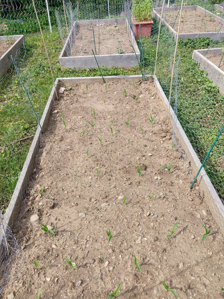 Raised bed 3: sweet corn. The sweet corn will be ripe and eaten/in the freezer by mid August. After the corn is harvested this bed will hold a fall planting of bok choy and maybe kale. Maybe, I still might hate kale. No promises have been made.