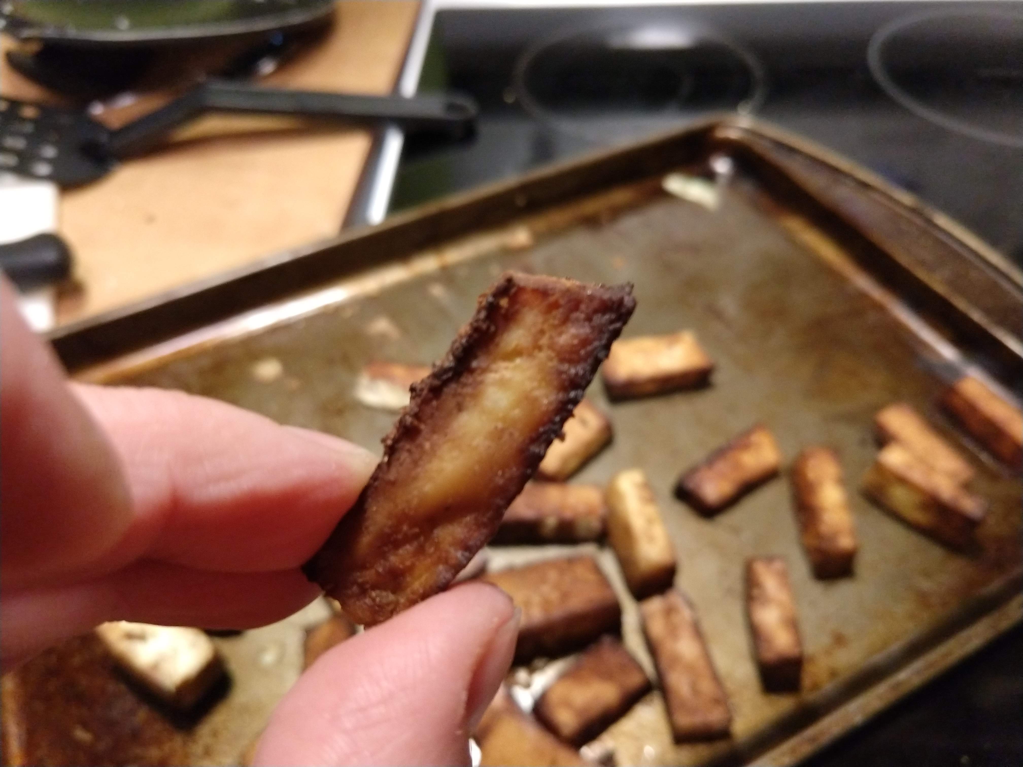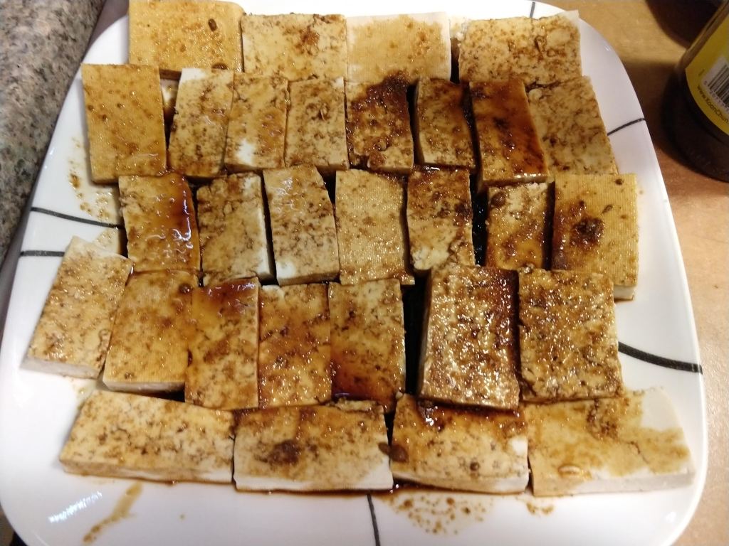 This right here is what you are looking for. The tofu is now ready for your favorite stir-fry. Or just eat them. The flavor variations are almost limitless- just pick a different marinade.
