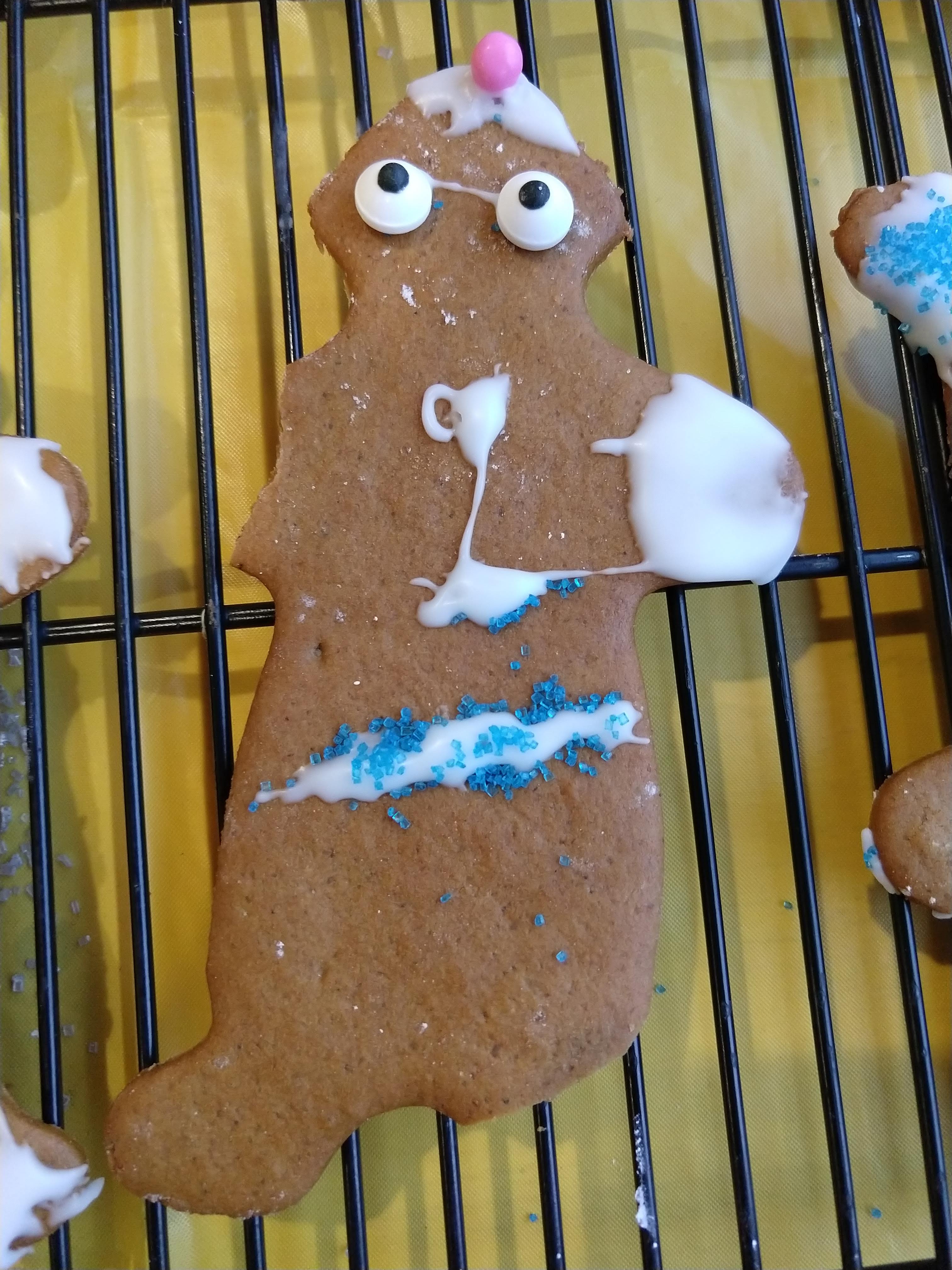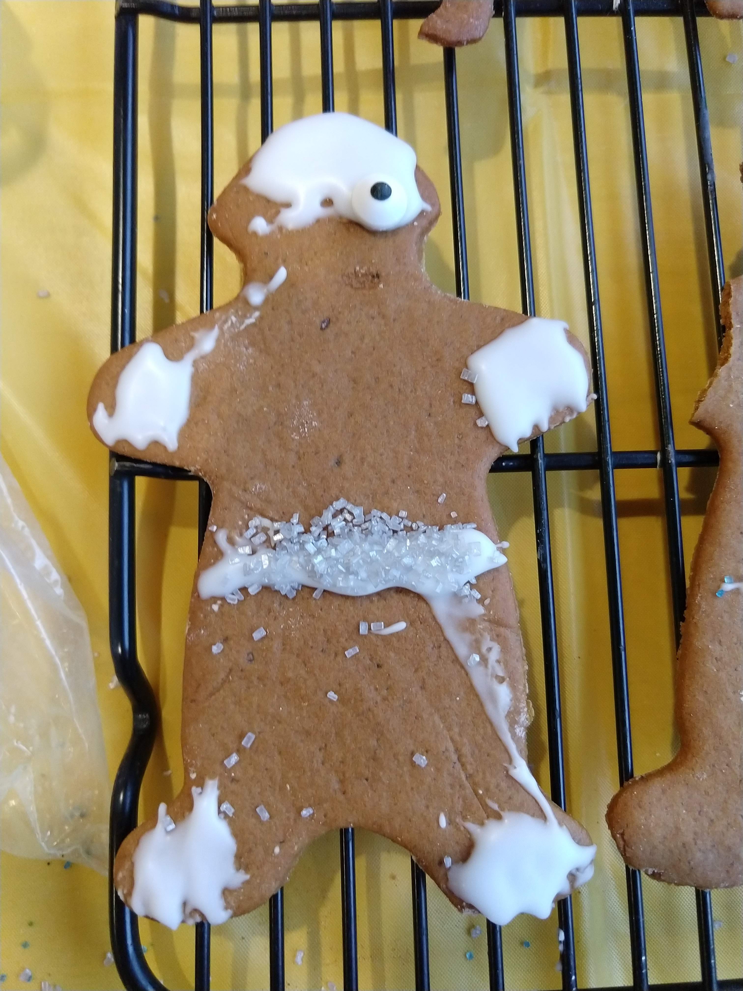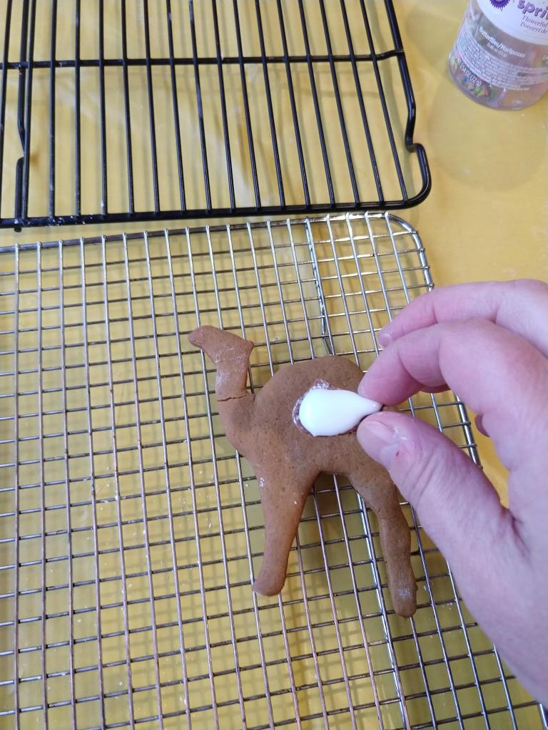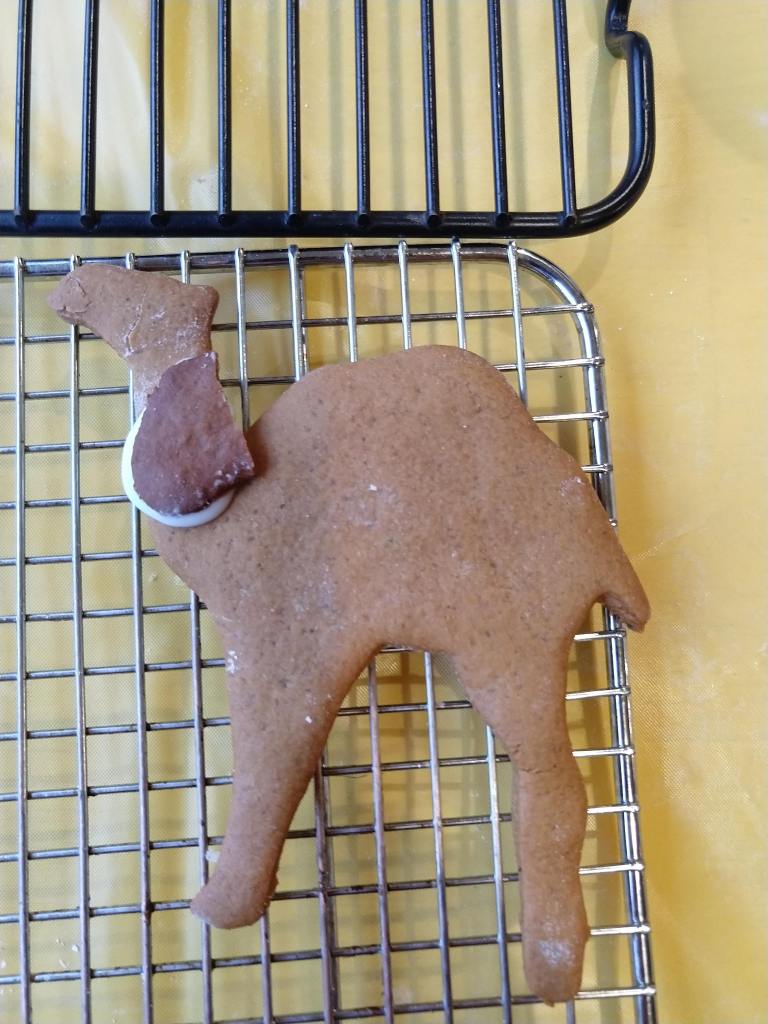 Dad had the idea to use a broken-off gingerbreadfolk foot as a neck brace for a camel. I liked the idea so much I gave it a try. See how happy Mr. Camel is? You know what else is making Mr. Camel happy?