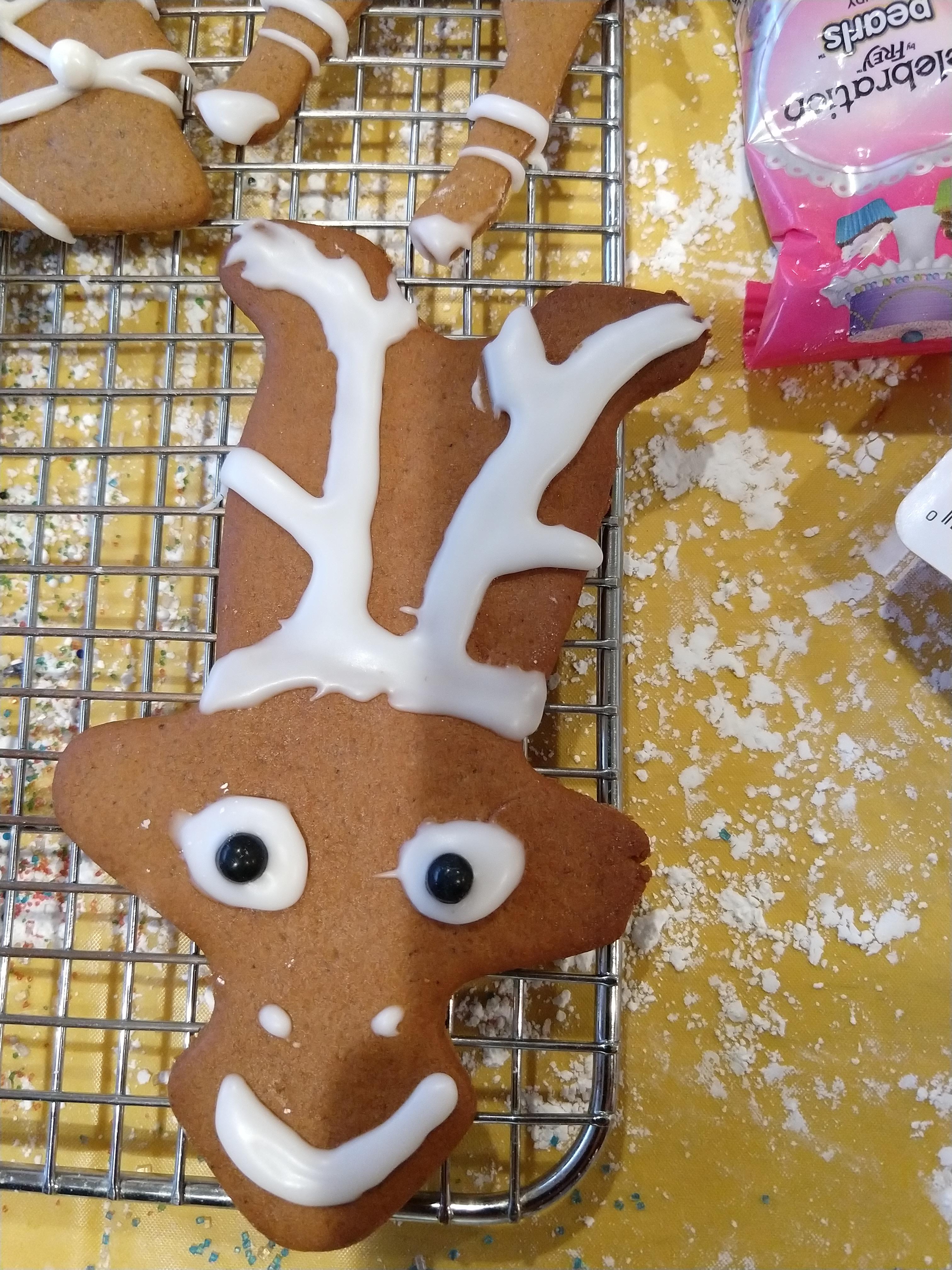 Syllie went all Pintrest and made a gingerbreadfolk into a reindeer! His name is Zachary.