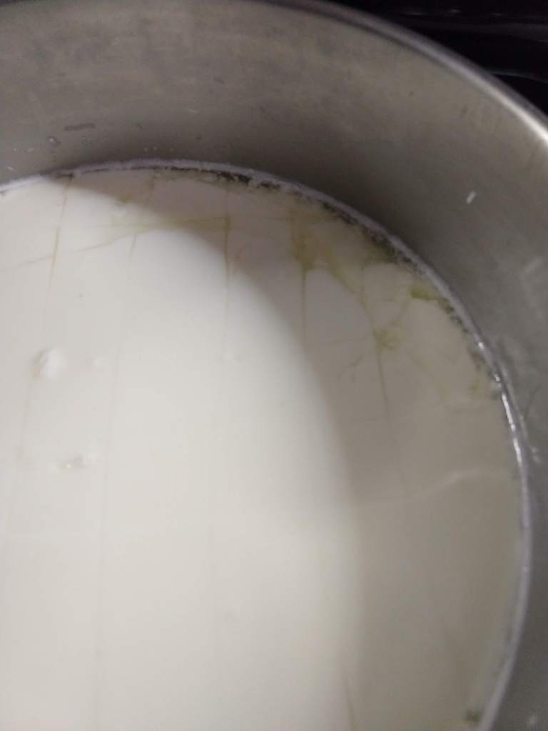 Unfortunately, we found two barriers while we planned our cheese making. Both were easily overcome, however. First, we could not find citric acid, as called for in the recipe. A quick internet search found that lemon juice could be used instead; two tablespoons of lemon juice or vinegar is equal to one half teaspoon powdered citric acid. Next, Syllie purchased powdered rennet but the recipe listed amounts for liquid rennet and rennet tablets. Using information on the back of the rennet bottle and some math, Syllie figured we would need 5.28 g of rennet powder. To be honest, solving those two little problems was the most difficult part of the cheese making process. Check this out: