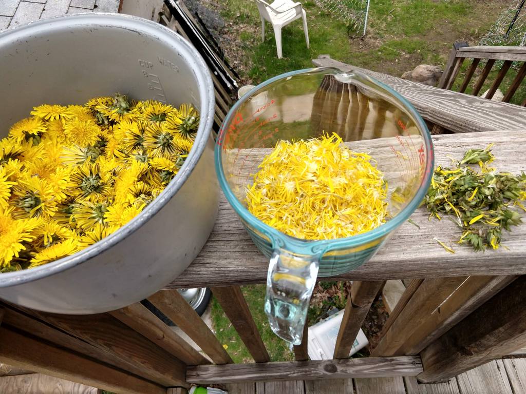The first step is to gather some dandelions. If you are not an avid forager, remember the rules of wild harvesting: