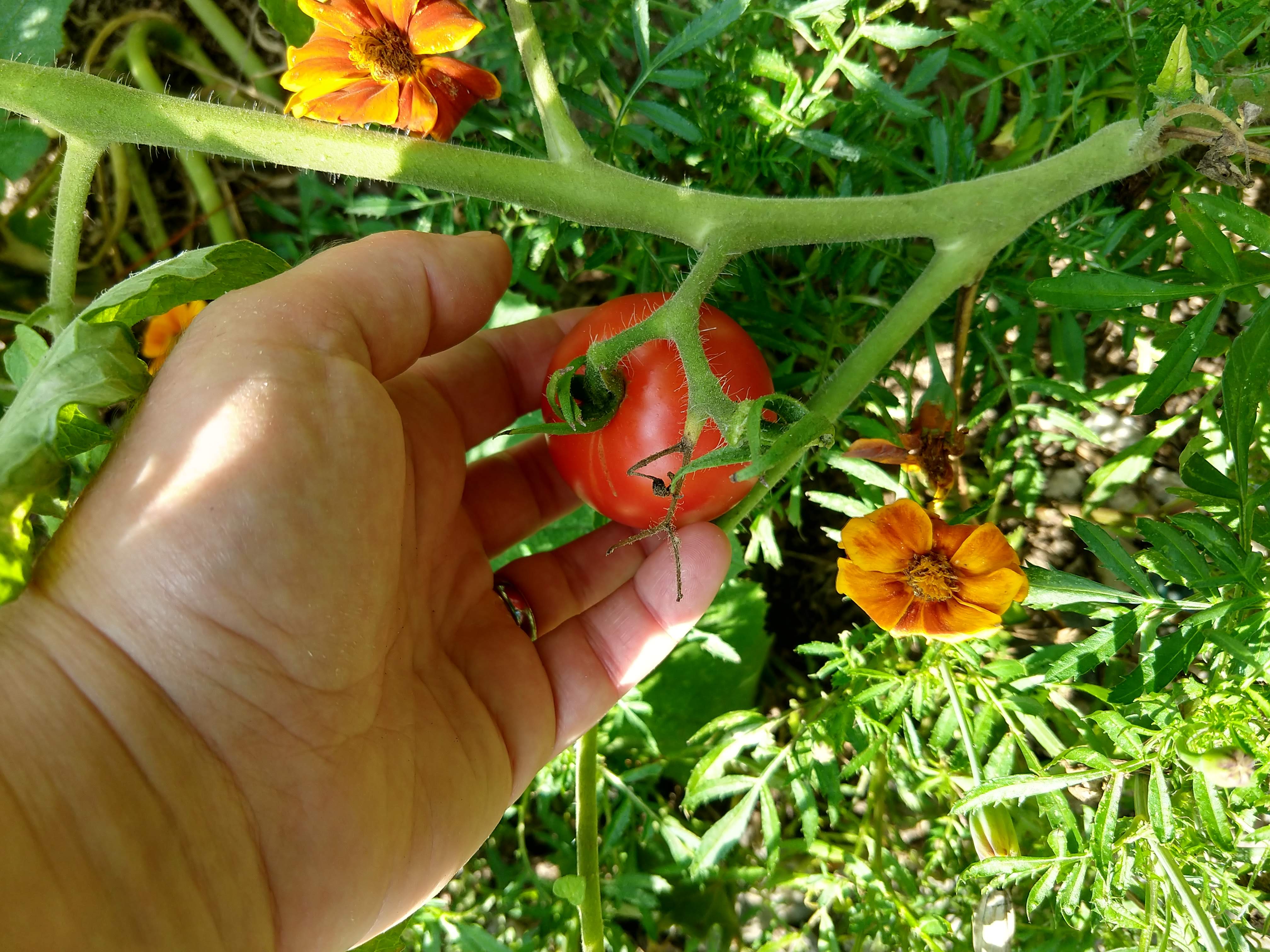 - My spouse, tying up the tomatoes the wrong way.