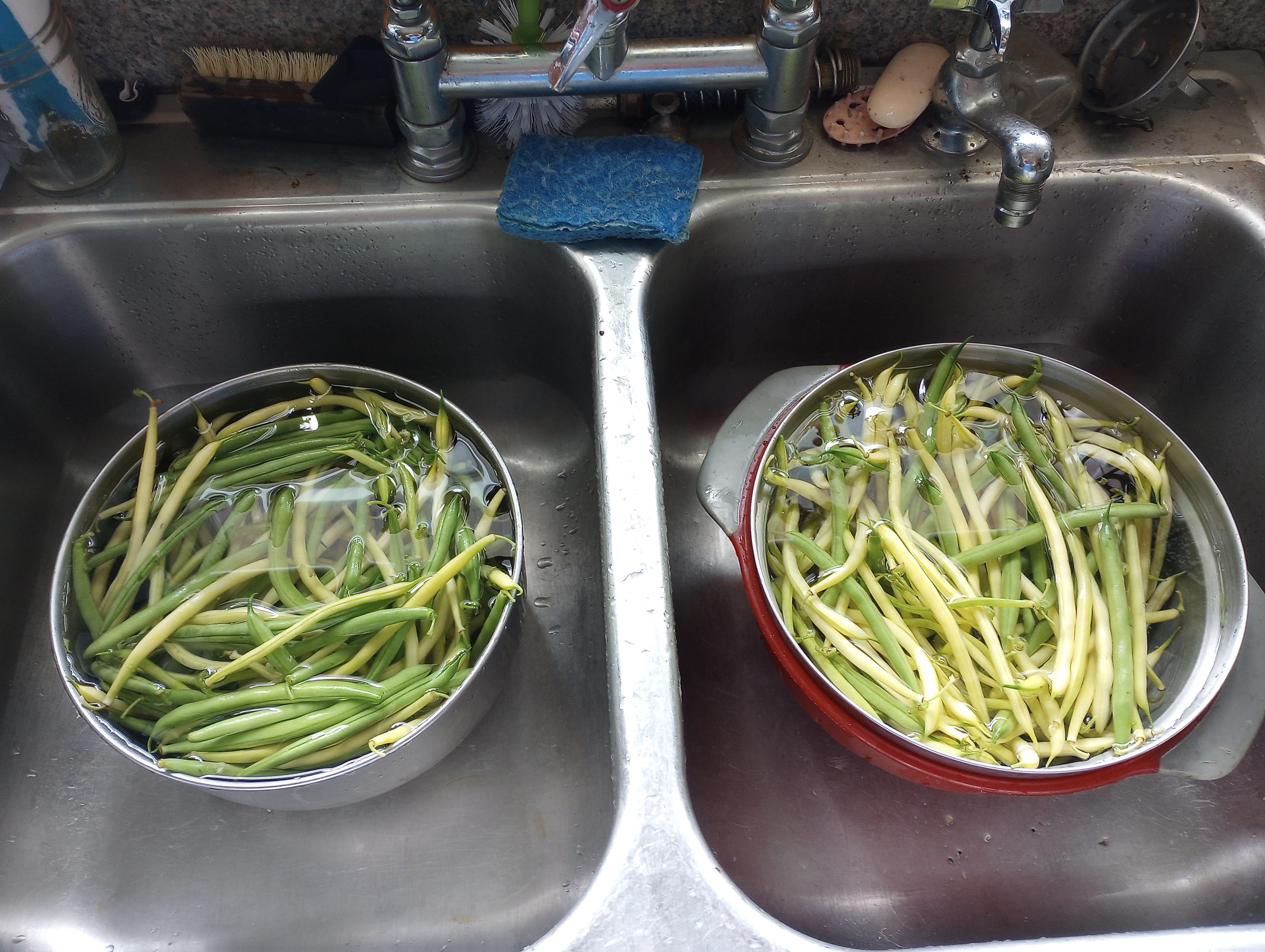 This week it finally happened- I picked enough string beans in one day to make a batch of string bean pickles. I love fresh string beans, so I grow them every year. In fact, I am currently growing two, 4×8 foot raised beds of string beans (one of Provider green beans, one of Yellow Pencil Pod was beans). Mr. Food It Yourself is not the greatest string bean fan, but he does like pickles. I am hoping that pickled string beans will win him over. The biggest stumbling block has been the availability of adequate beans. String beans really do have to be processed the same day they are picked. For the first time, I had four pounds of string beans picked in one day. I grabbed my canning equipment and got to work.