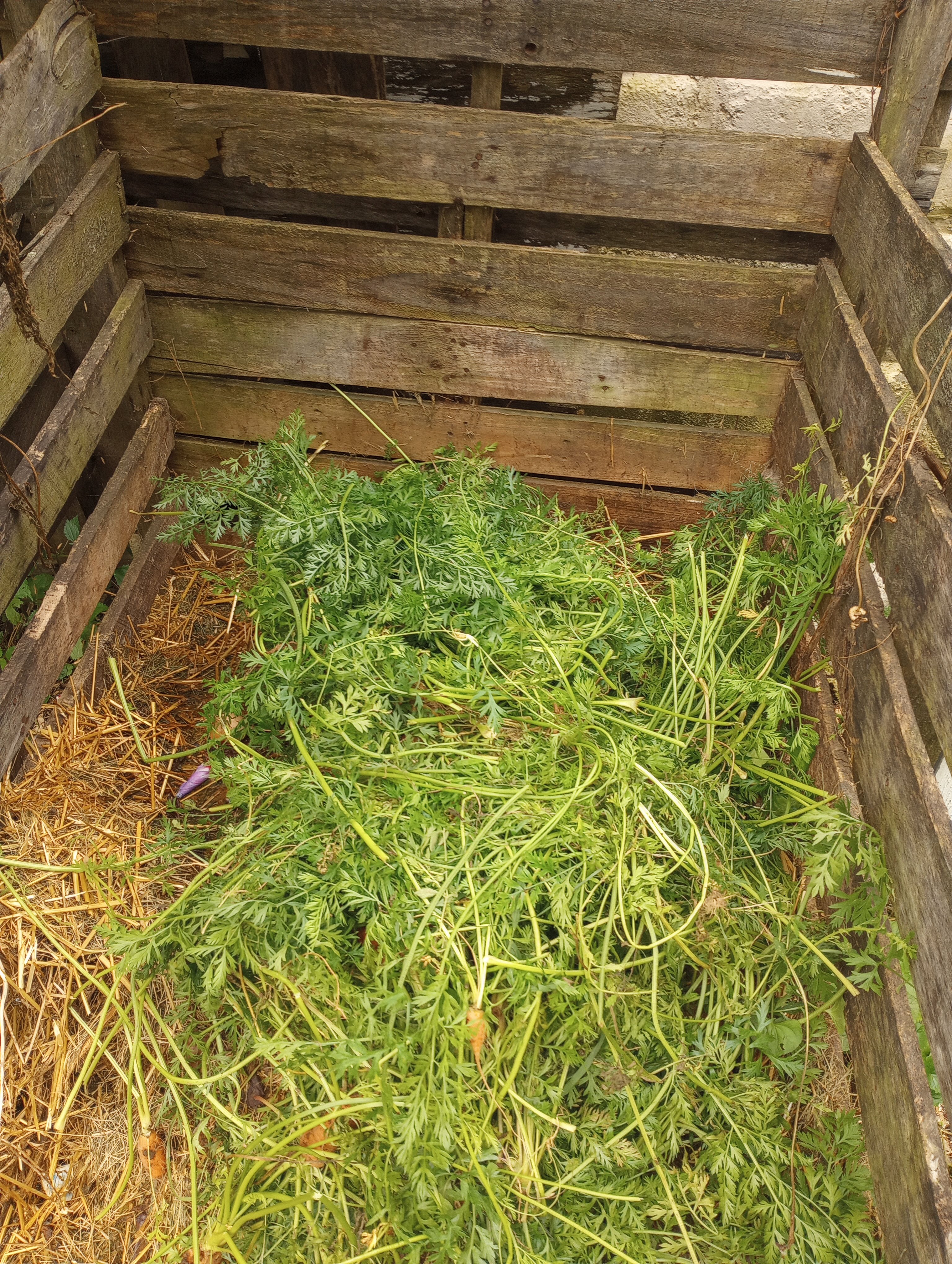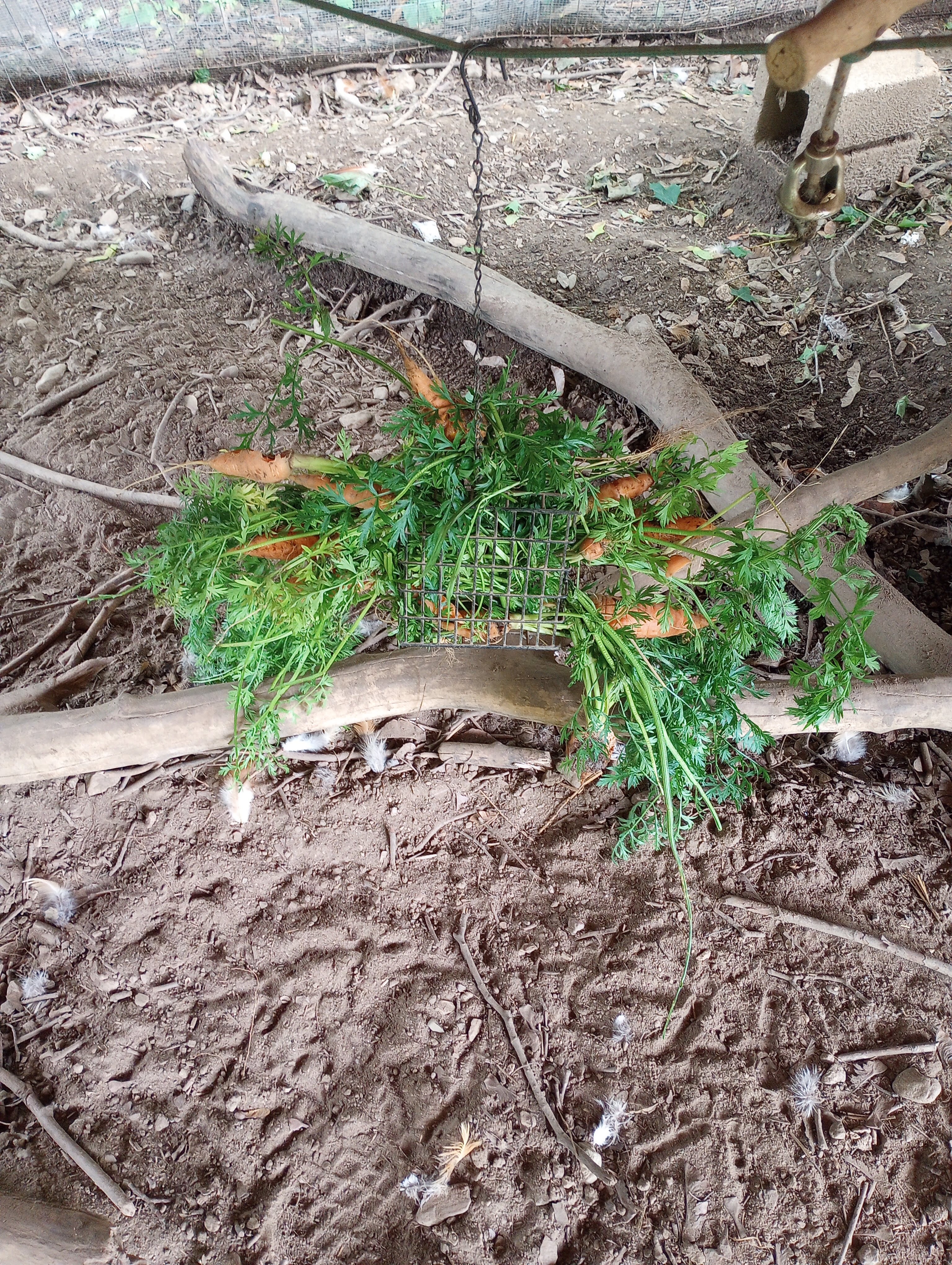 The second step was sorting the carrots. Some were very small, so I laced them through my trusty suet feeder and let the chickens have them. Some were very large. I may have awoken an elder god. Some were very slug or snail damaged. It has been a good year to be a slug or snail. Those ones I tossed in the compost pile. Remember, if it goes to the compost pile it is not wasted. Some things just need another trip around.