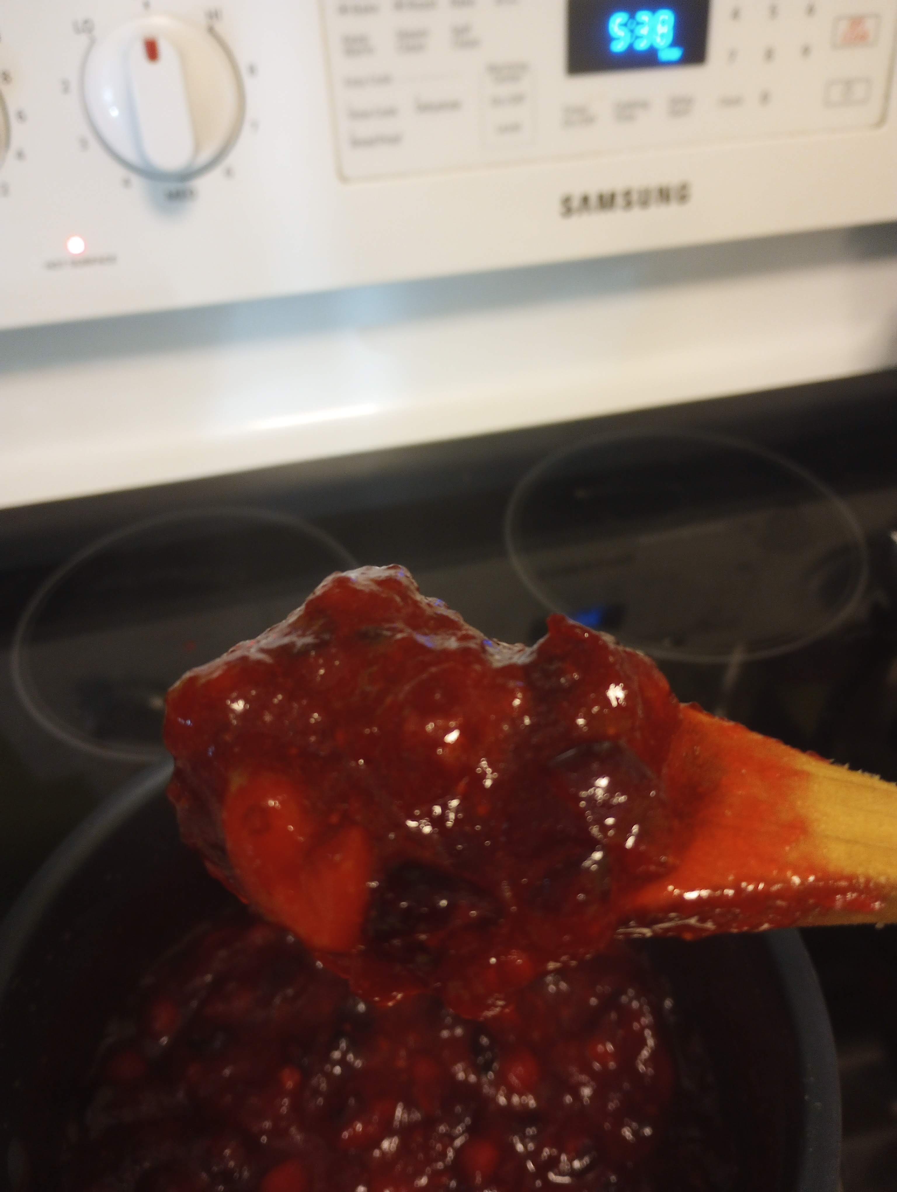 How is it already late November? I am pretty sure yesterday was August 18th. Somehow, today is Thanksgiving Day in the USofA. This year, Mr. Food It Yourself, my dad, and I shared the holiday with Mr. Food It Yourself’s family. I am thankful that I got to spend the day with family, sharing a delightful meal and enjoying each other’s company. As usual, I made cranberry sauce.