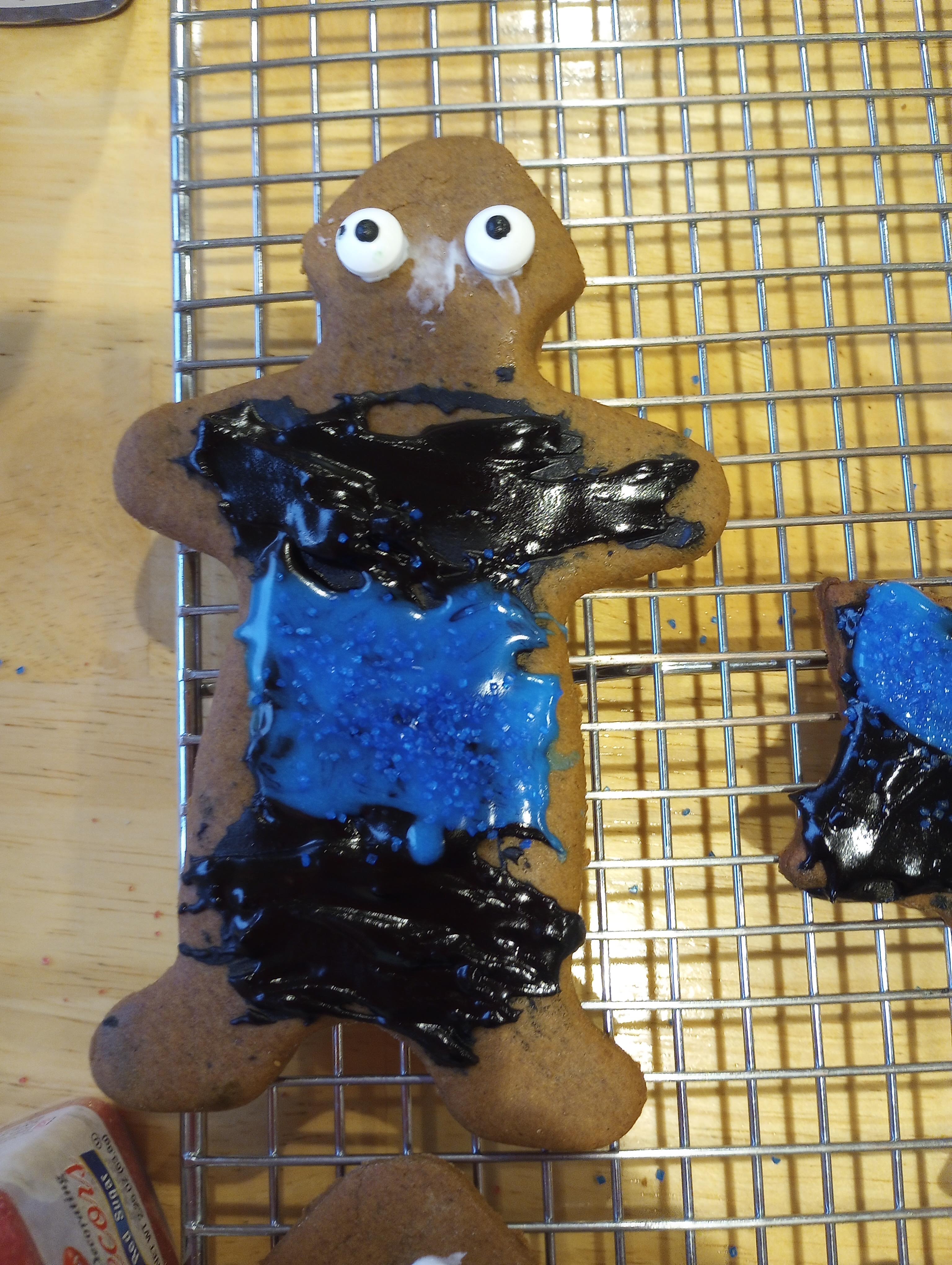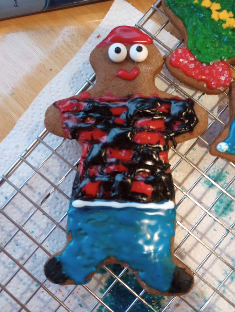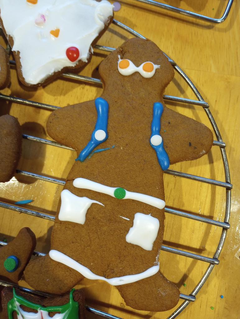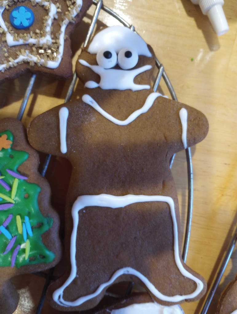 I started telling you about these cookies in 2016. For several years now I have been sharing the gingerbread folk we decorate. House rules state that all gingerbread folk must be given a name and a back story. My Family by Choice was more than happy to play along. ❤ Here are the new friends we made.