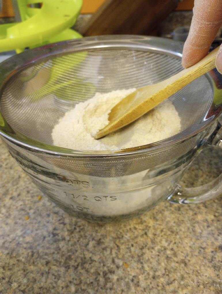 The first step is to preheat the oven to 350F and mix everything together. I like to combine the dry ingredients first, then add the buttermilk. My brown sugar was from a new package and kind of wet, so it made some large lumps. I passed the dry ingredients through a sieve to break the lumps.
