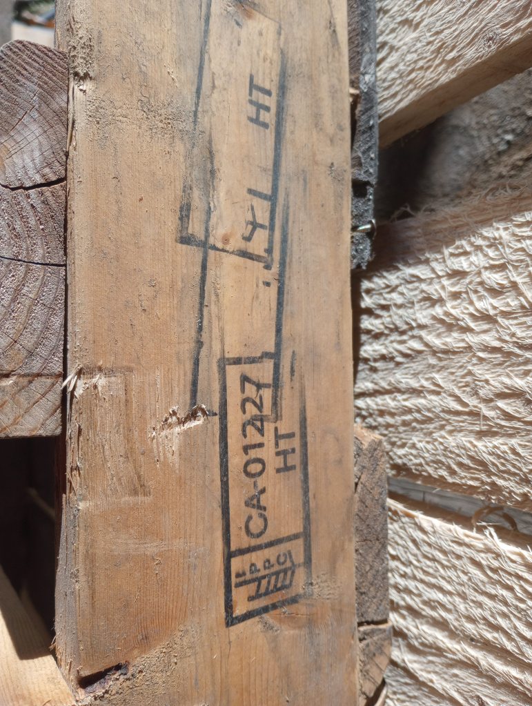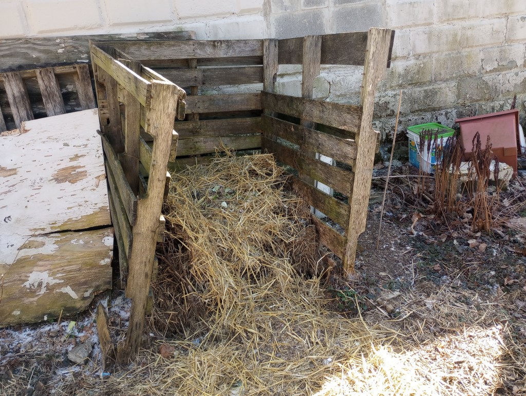 Our compost bin has seen better days. Thankfully, a local business always has extra pallets available for the taking. I have collected three to rebuild the bin as soon as the ground around it thaws. A good tip if you like making things from pallets: know what the markings on the sides mean. The three pallets I have are marked “HT”, which means they have been heat treated, but not treated with chemicals. Be careful with pallets marked “MB”. These have been treated with methyl bromide, a toxic compound. You do not want that in your compost.