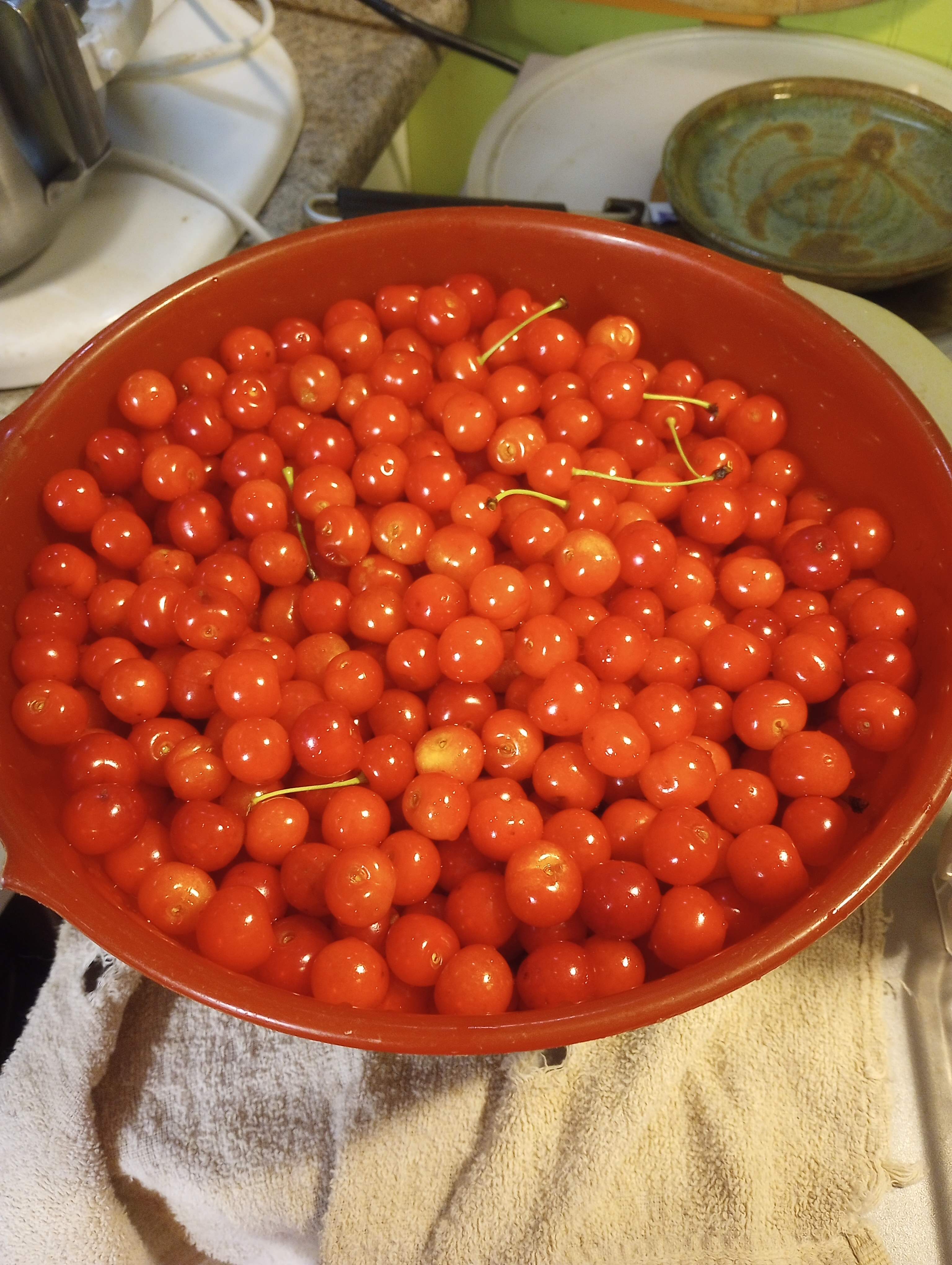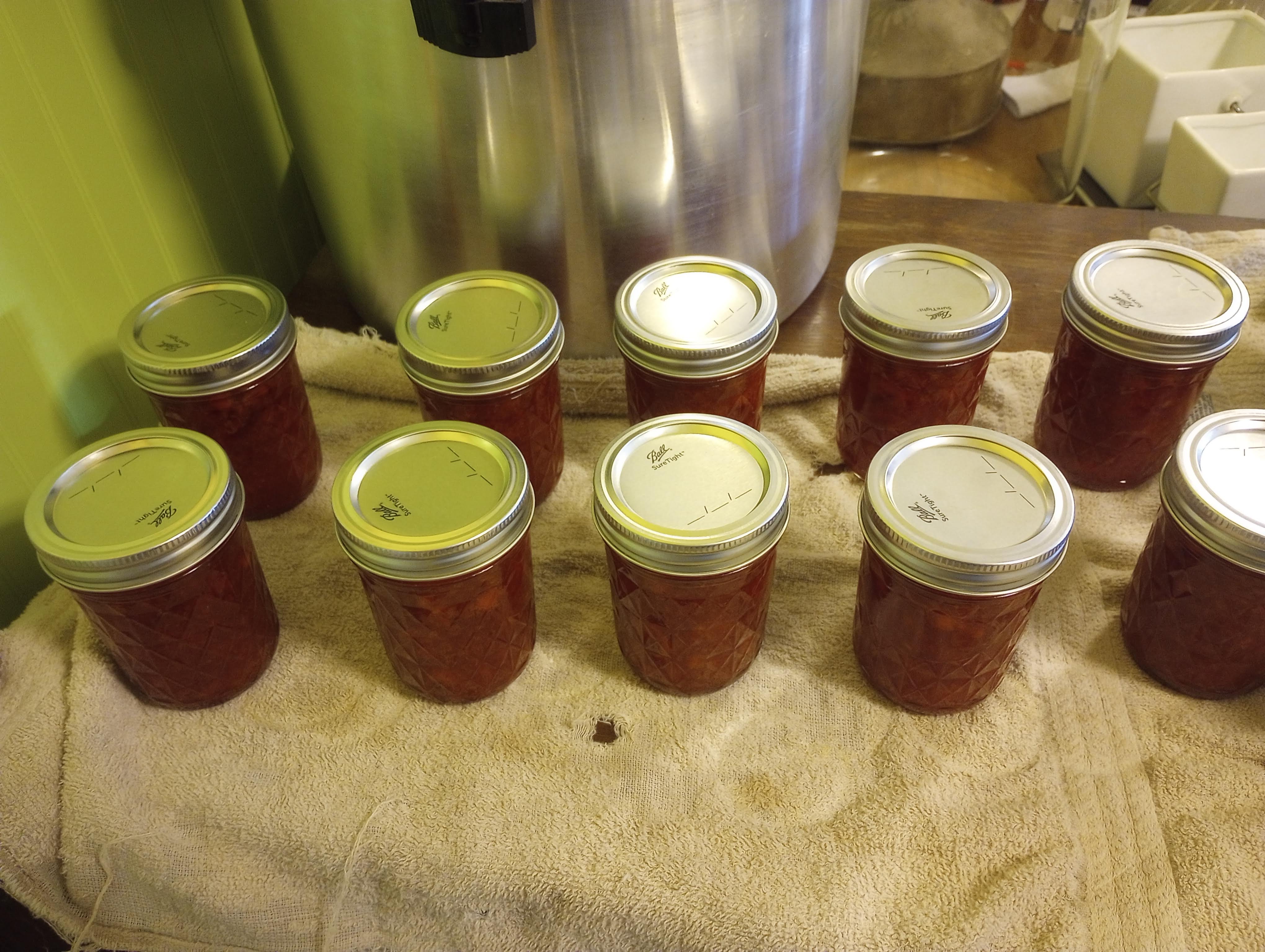 Cherries and grapes did exceptionally well. Especially the grapes, since we do not tend them. They just do their thing and I pick them and make jelly. This is the first year I was able to make two batches of grape jelly- although I must admit I had to top of the second with a splash of store-bought juice. We got three batches of cherry jam. I also made a batch of triple berry jam, made with blackberries, strawberries and blueberries. The blackberries were picked from the wild plants that have made a home along our fence. The other berries were purchased. Not because we had a poor strawberry crop, but because I once again failed to save any of them in the freezer. Fresh, homegrown strawberries are just such an amazing food. I tell myself that next year I will stash some in the freezer for jam making, but I have a feeling I will not. I regret nothing.