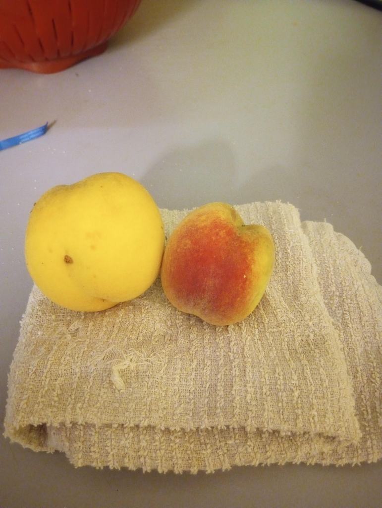 You may remember the drama with my fruit salad tree. We had to strip some of the fruit in late spring to spare the branches, then squirrels ate every last apricot, nectarine, and peach. We did get a decent plum harvest, though. But wait- we had two surprise peaches that Mr. Food It Yourself and I were able to enjoy! I noticed one and said nothing for weeks as it ripened. Not that I am superstitious… The day I finally picked it, I noticed another. The were so delicious. I have declared war on the squirrels of the Wachusett Valley and will be using all available methods to exclude the from my fruit trees next season. I need more of these peaches.