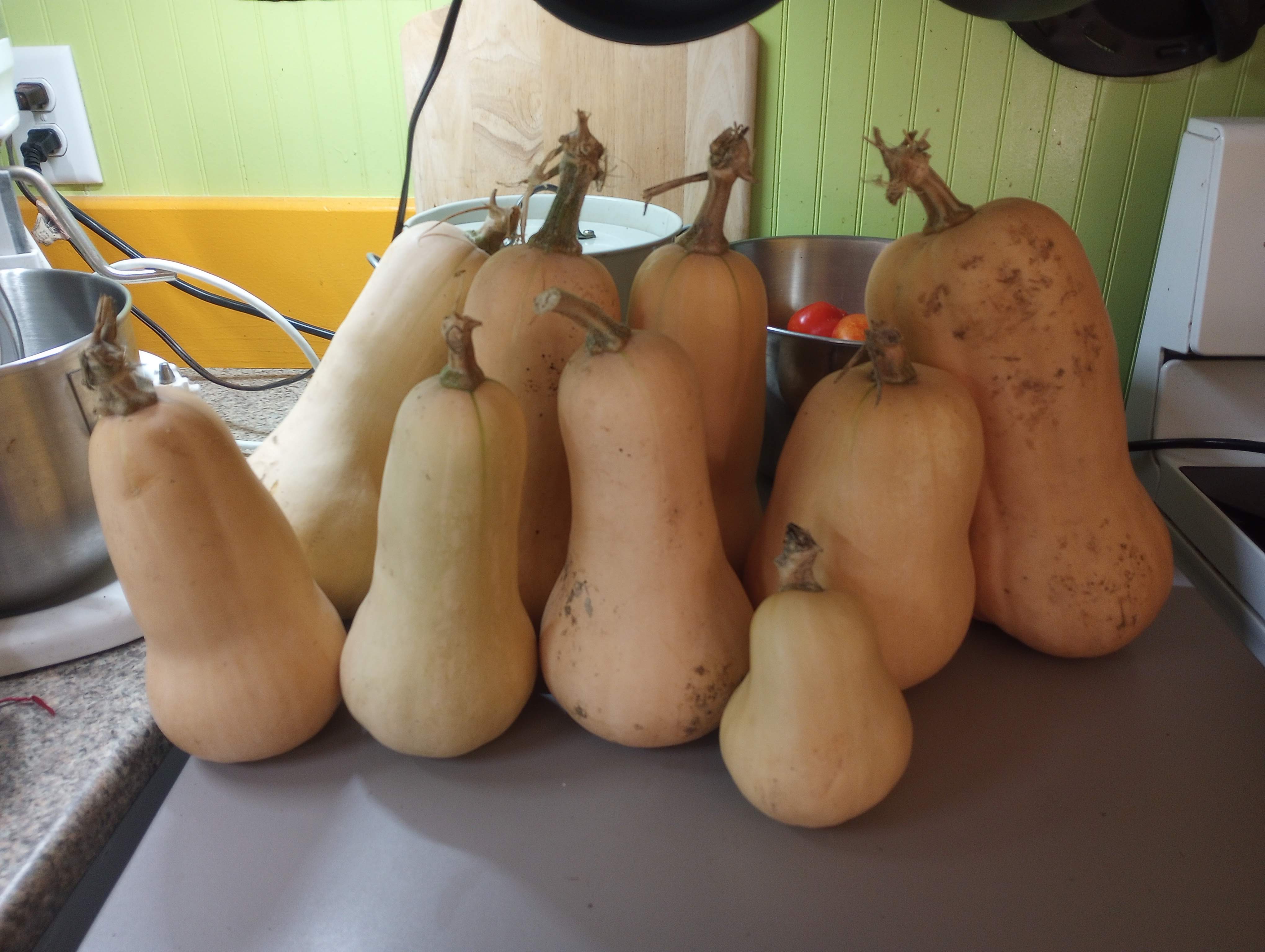 We also grew butternut squash for the first time this year. Our final yield was a bit over 25 pounds. We have been eating a good deal butternut squash, and enjoying every bite. We will definitely grow this again.