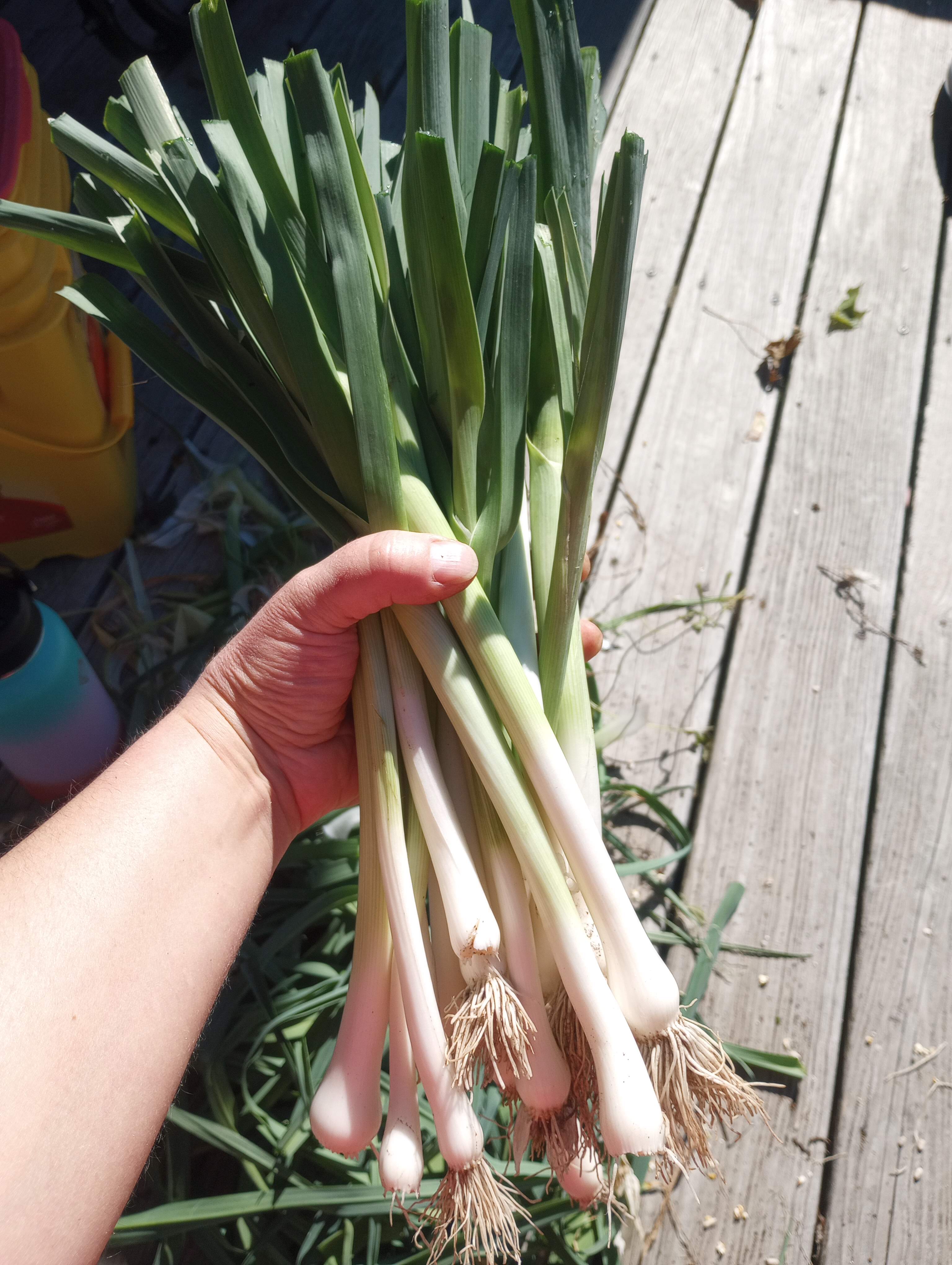 We grew leeks for the first time this year. If you are not familiar with them, they are a member of the onion family with a mild flavor. I started them inside and planted them in a shadier part of the yard, as the seed packet noted they would tolerate shade. They grew, but did not grow large. They may have been in an area that was too shady. They were delightful in leek and potato soup. I will probably try again next year, but put them in a sunnier space. They might go in the front yard.
